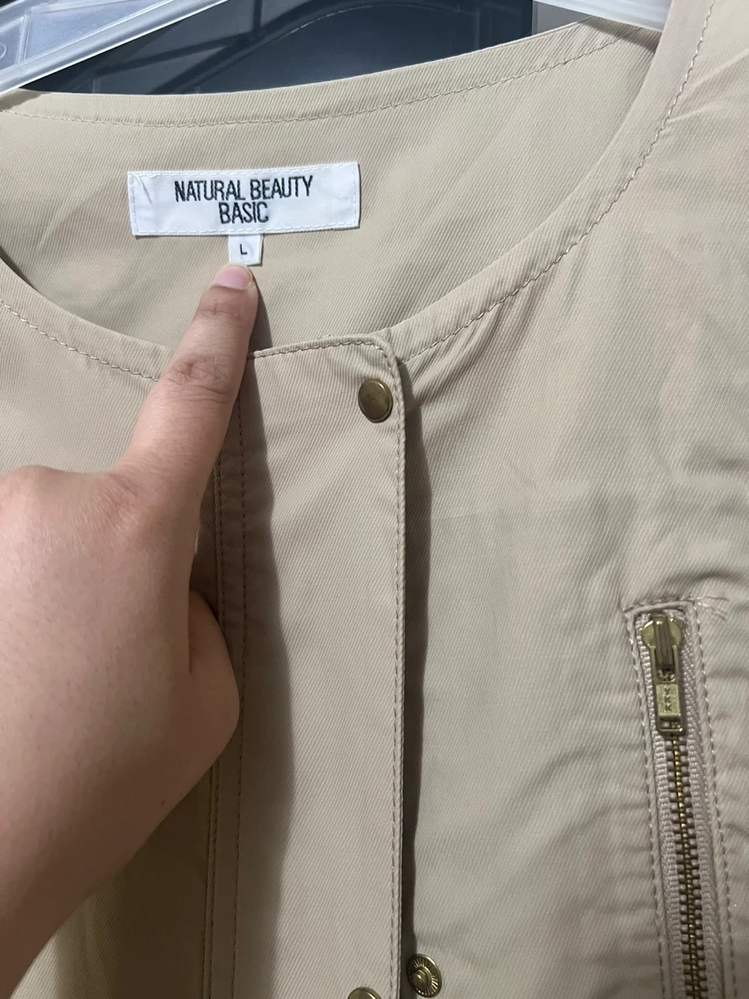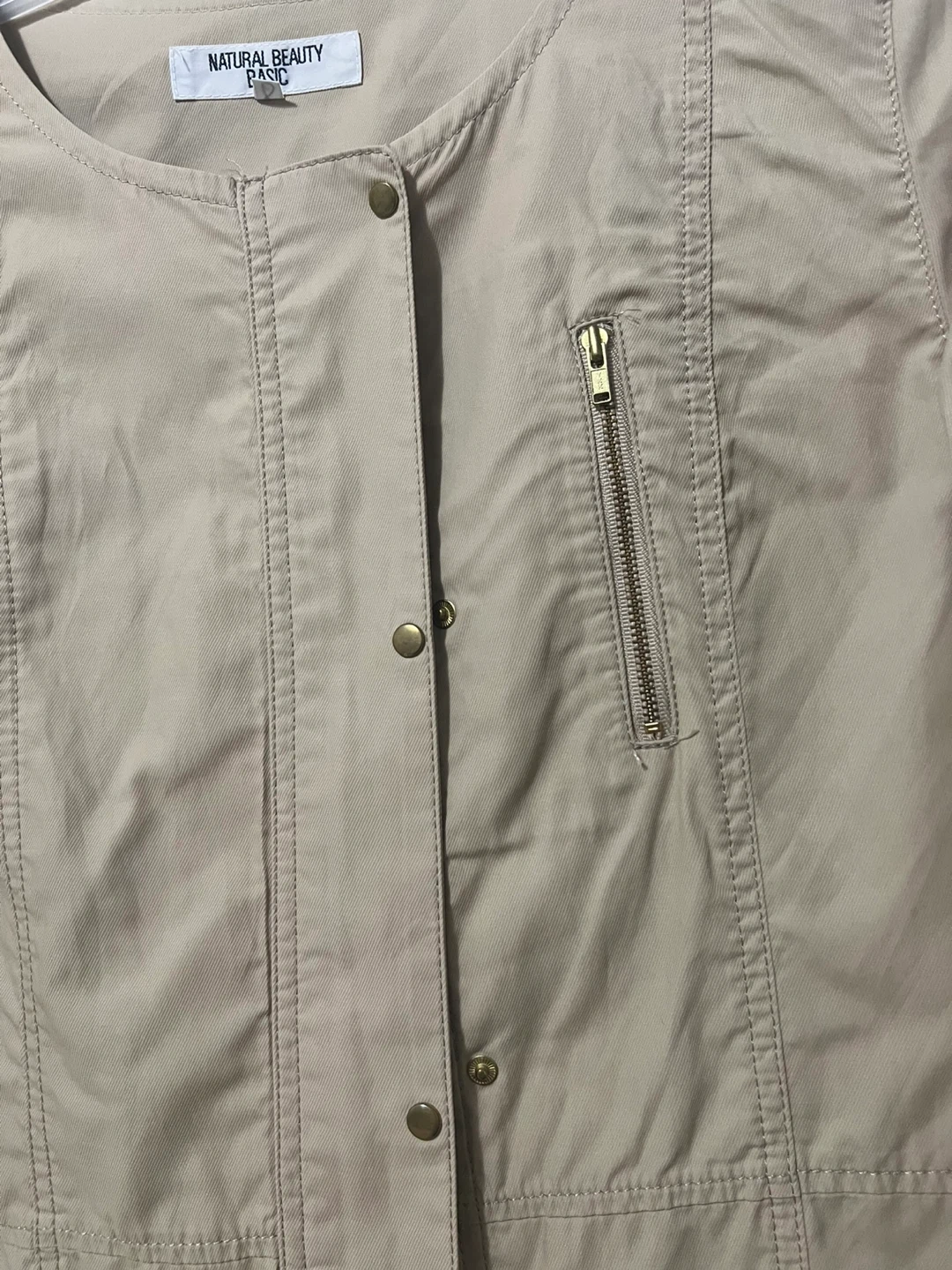 Selling a Natural Beauty Basic jacket in a lovely beige colour. It's a size L and in great condition! Perfect for layering during those in-between weather days. It features a zipper and button closure, adding a touch of style to your outfit
