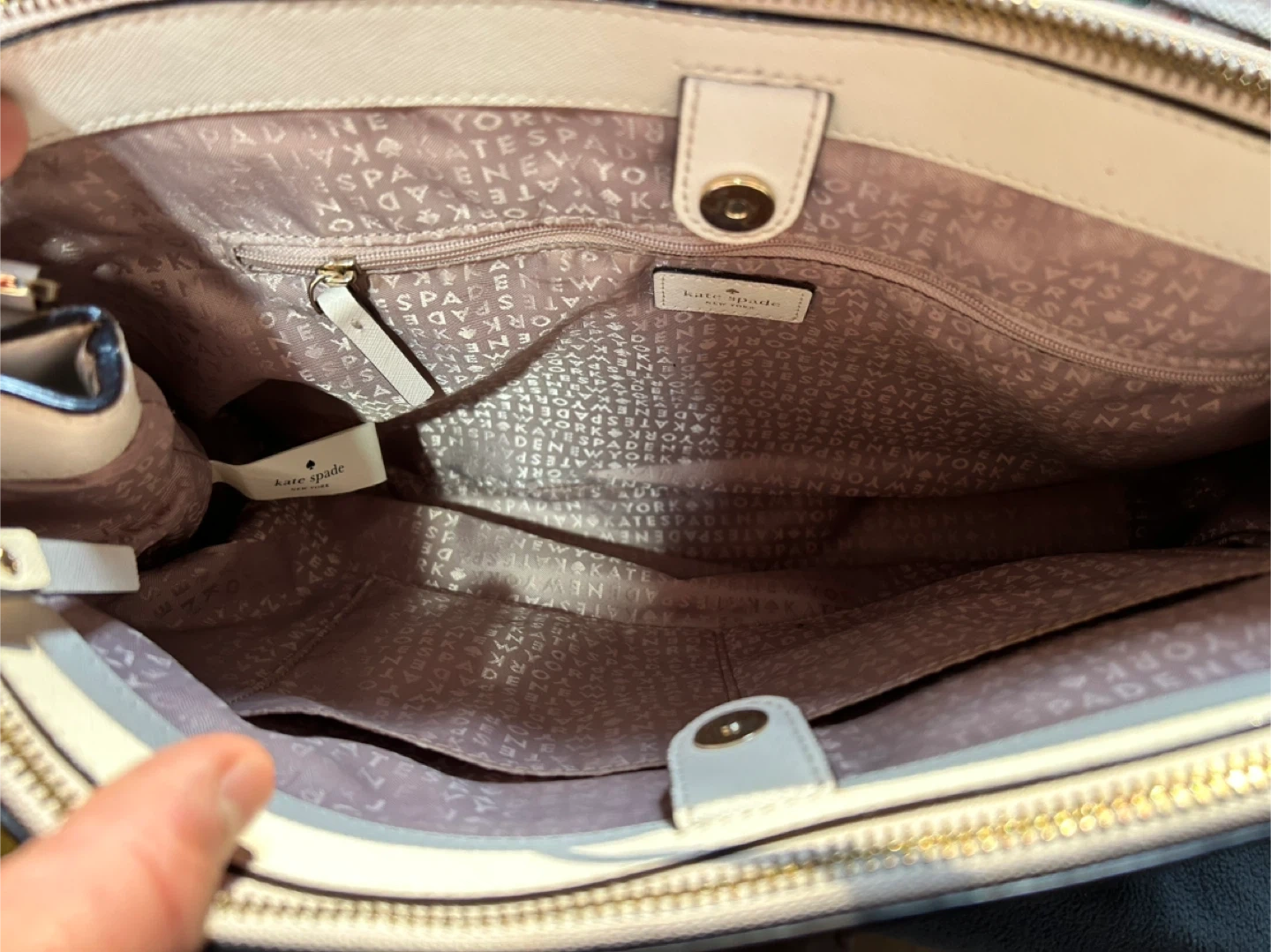 2. Kate Spade Beige Saffiano Leather Satchel: