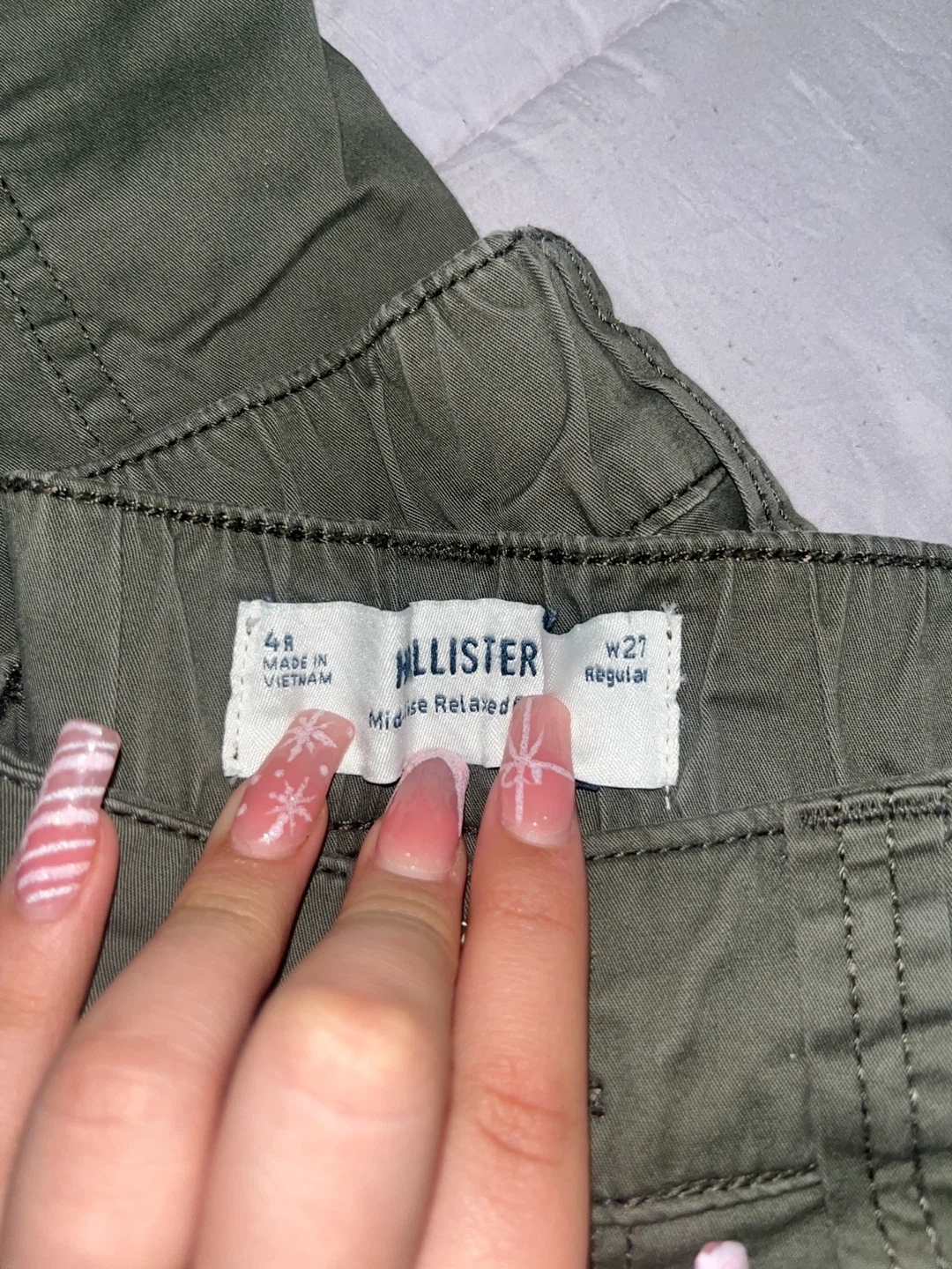 These are a pair of Hollister mid-rise relaxed pants in an olive color. They are a size W27 regular. These pants are perfect for a casual, comfortable look!