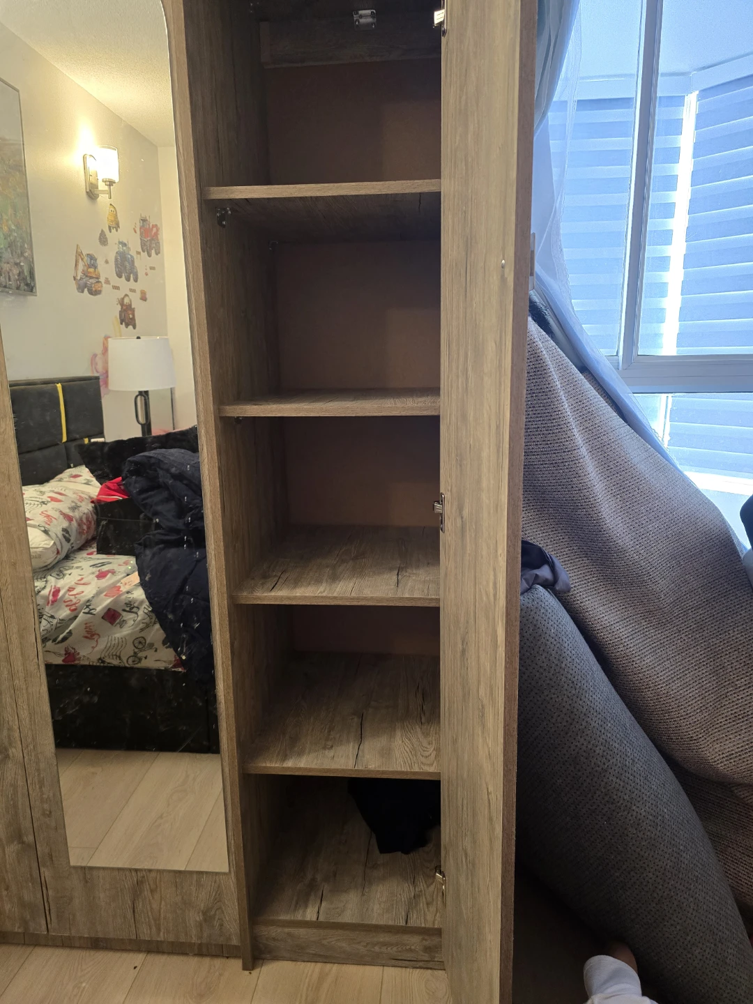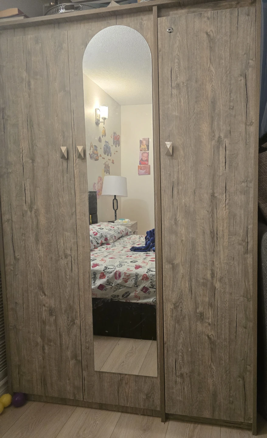 Selling a wardrobe with a wooden finish and a built-in mirror. It's in great shape and ready to use! W: 41×length: 71inch