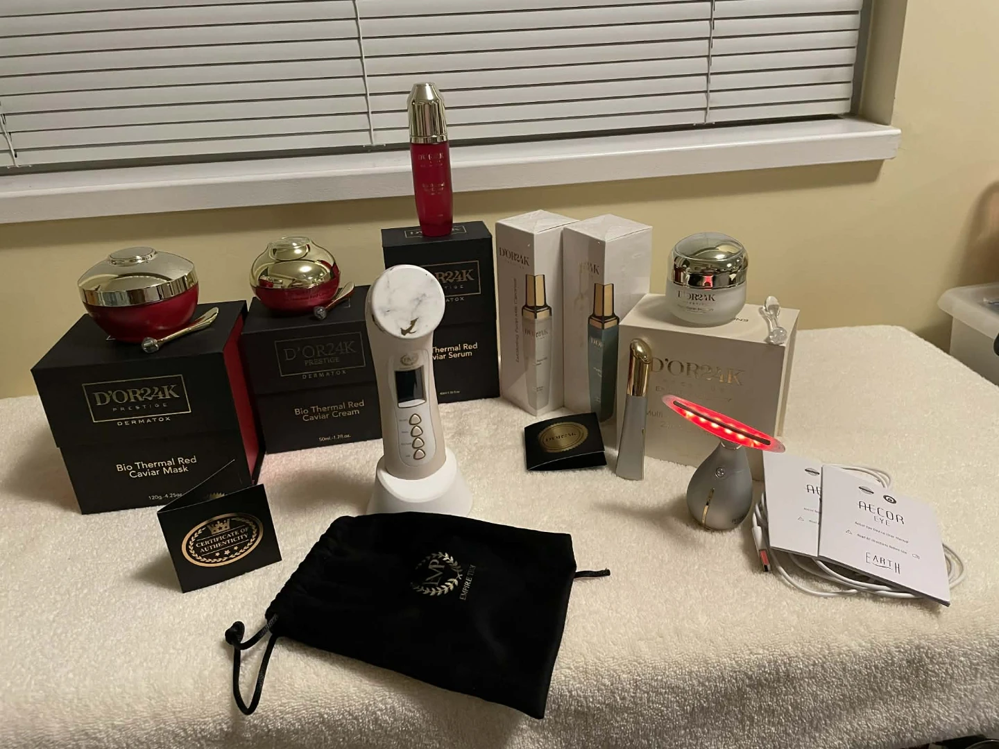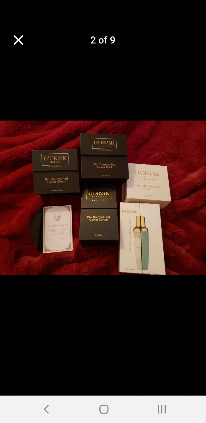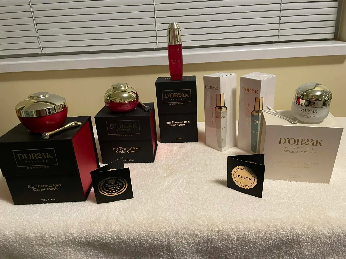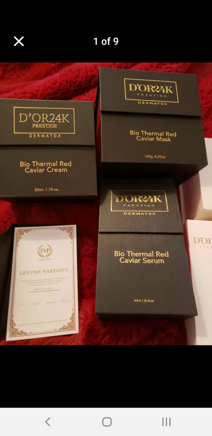 All NEW in box and come with lifetime warranty Can sell the separately or altogether. Make me an offer and we can go from there thx. Selling a D'OR24K Prestige Dermatox skincare set. The set includes: - Bio Thermal Red Caviar Cream (50ml - 1.7 fl.oz) - Bio Thermal Red Caviar Mask (120g - 4.25oz) - Bio Thermal Red Caviar Serum (40ml - 1.35 fl.oz) - Advanced Eye Cream (50ml - 1.7 fl.oz) - Exfoliating Pearl Milk Cleanser (120ml - 4 fl.oz) -Hyrda fresh toner (120ml- 4.Ofl.oz.) All items come in their original boxes and include a certificate of authenticity