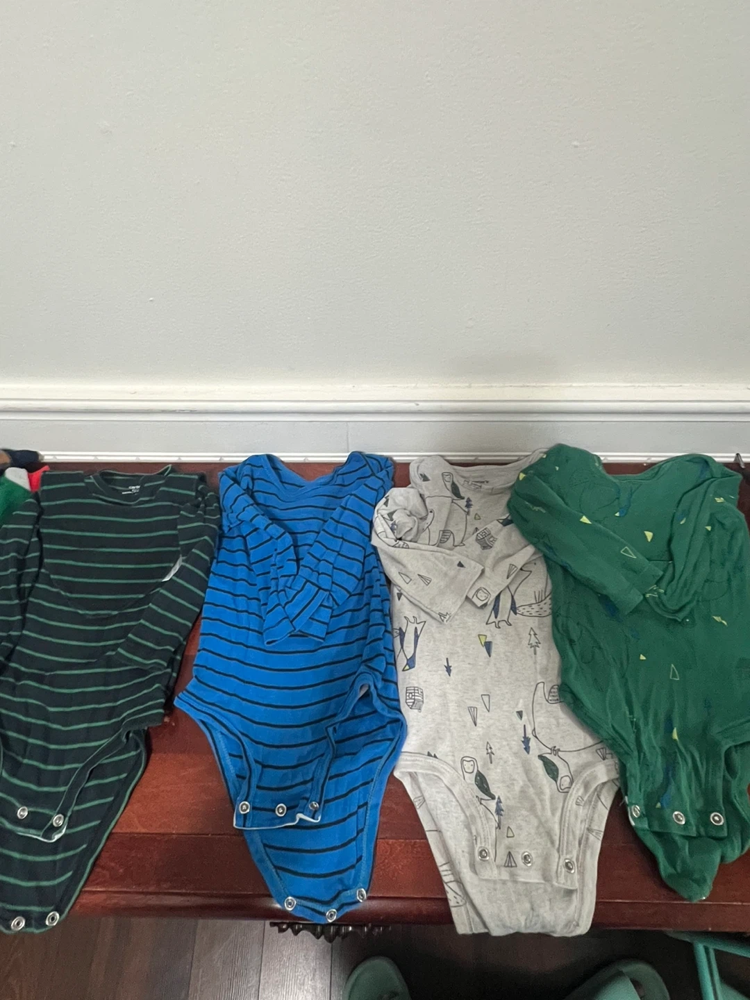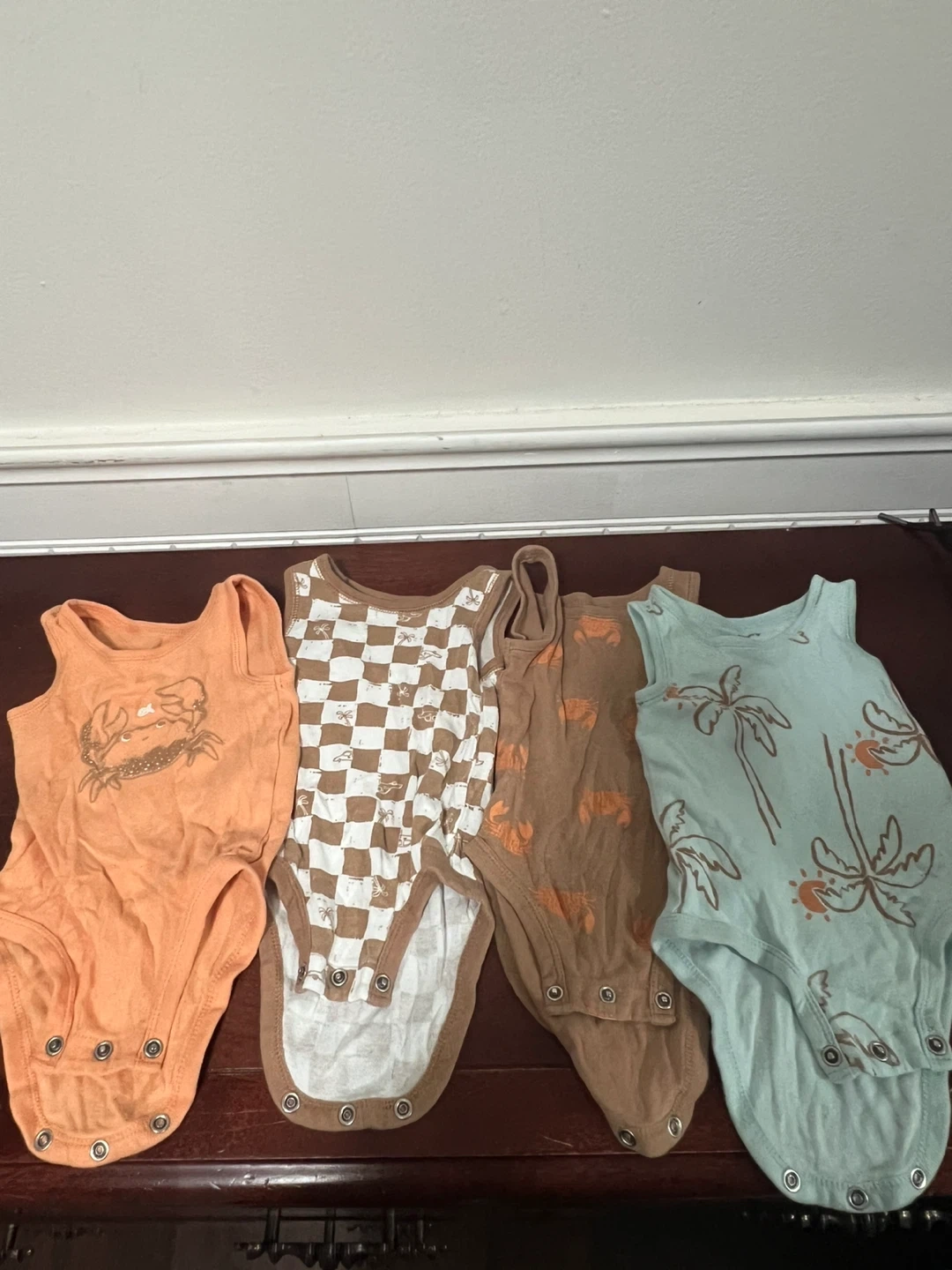 Selling a bundle of baby clothes in various sizes and styles! There are several onesies, sleepers, and a quilted snowsuit. Perfect for keeping your little one comfy and warm