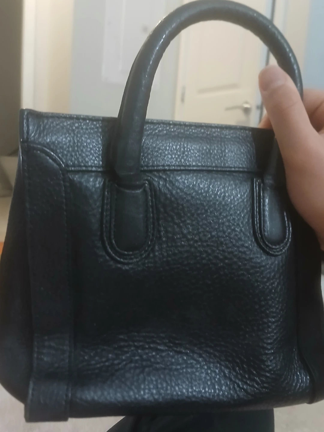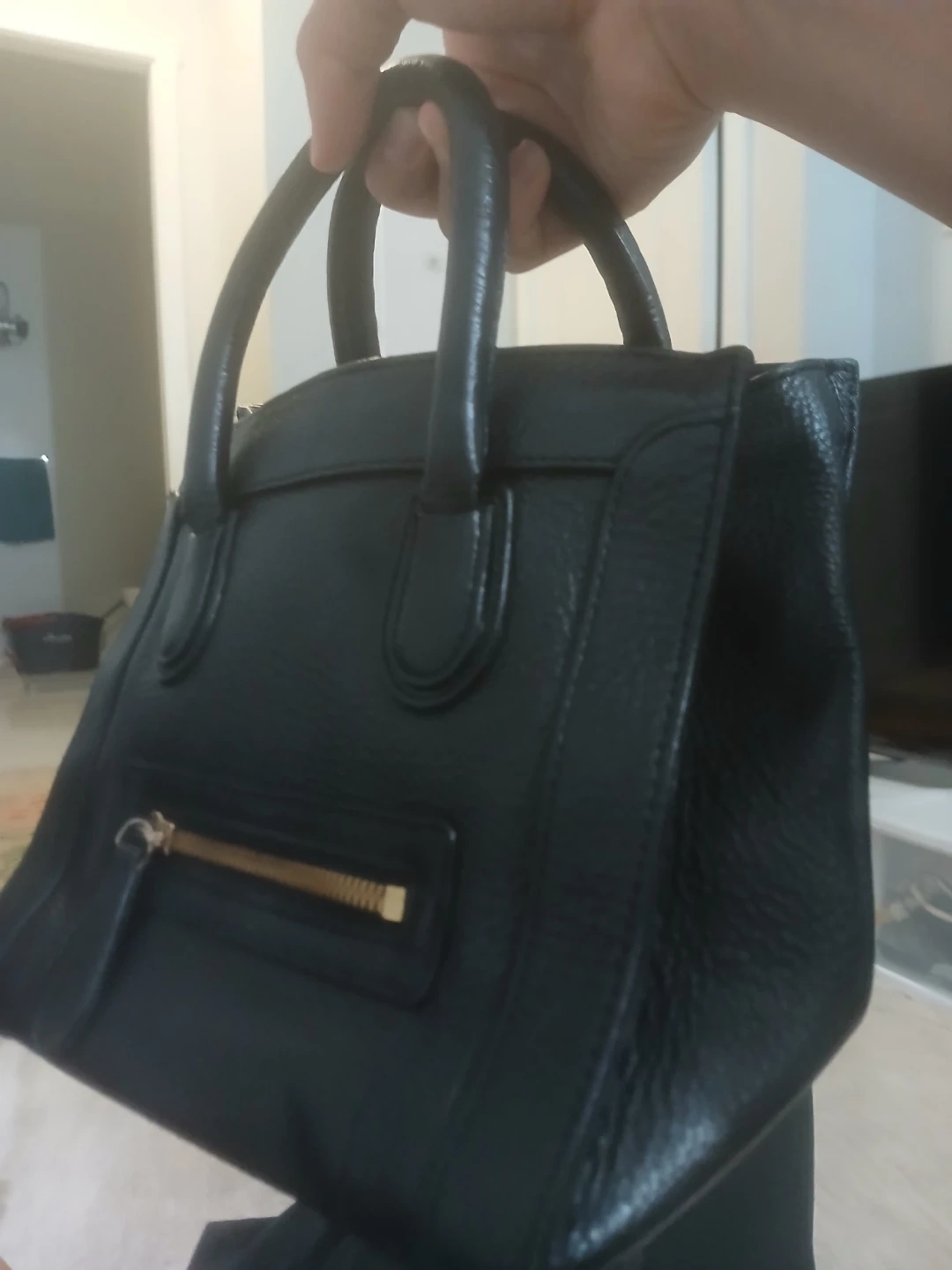Selling a stylish black leather top handle bag! It's in great condition and perfect for everyday use or a night out. The bag features a classic design with a structured shape and gold-tone zipper accents. It's a versatile piece that will complement any outfit!