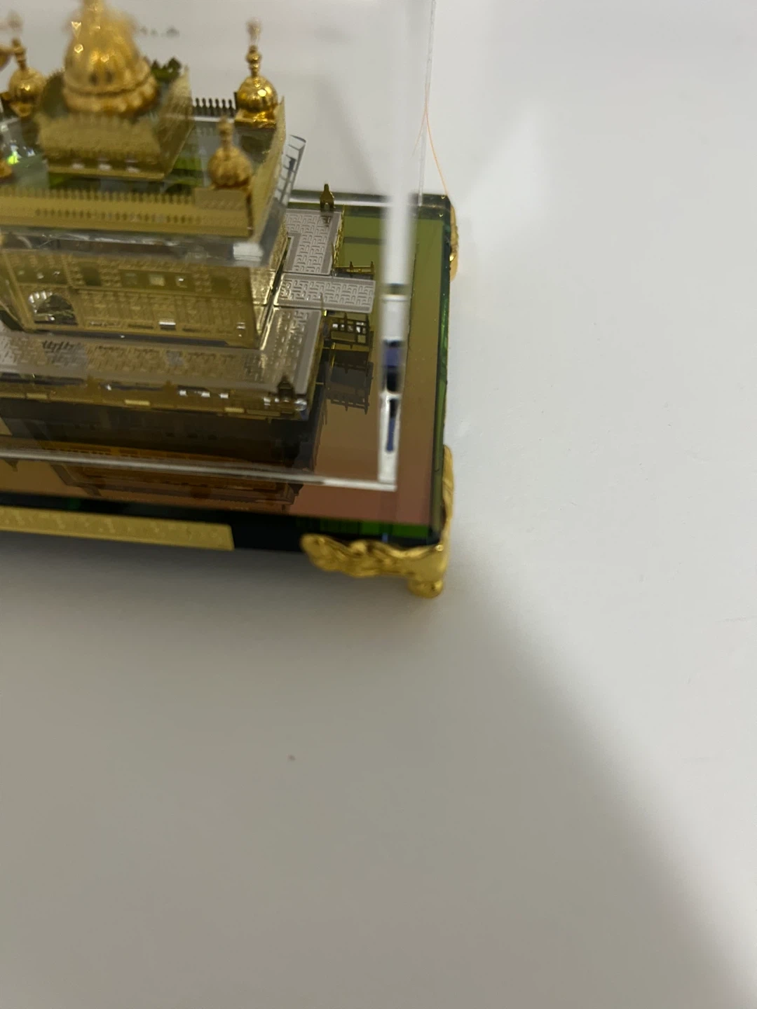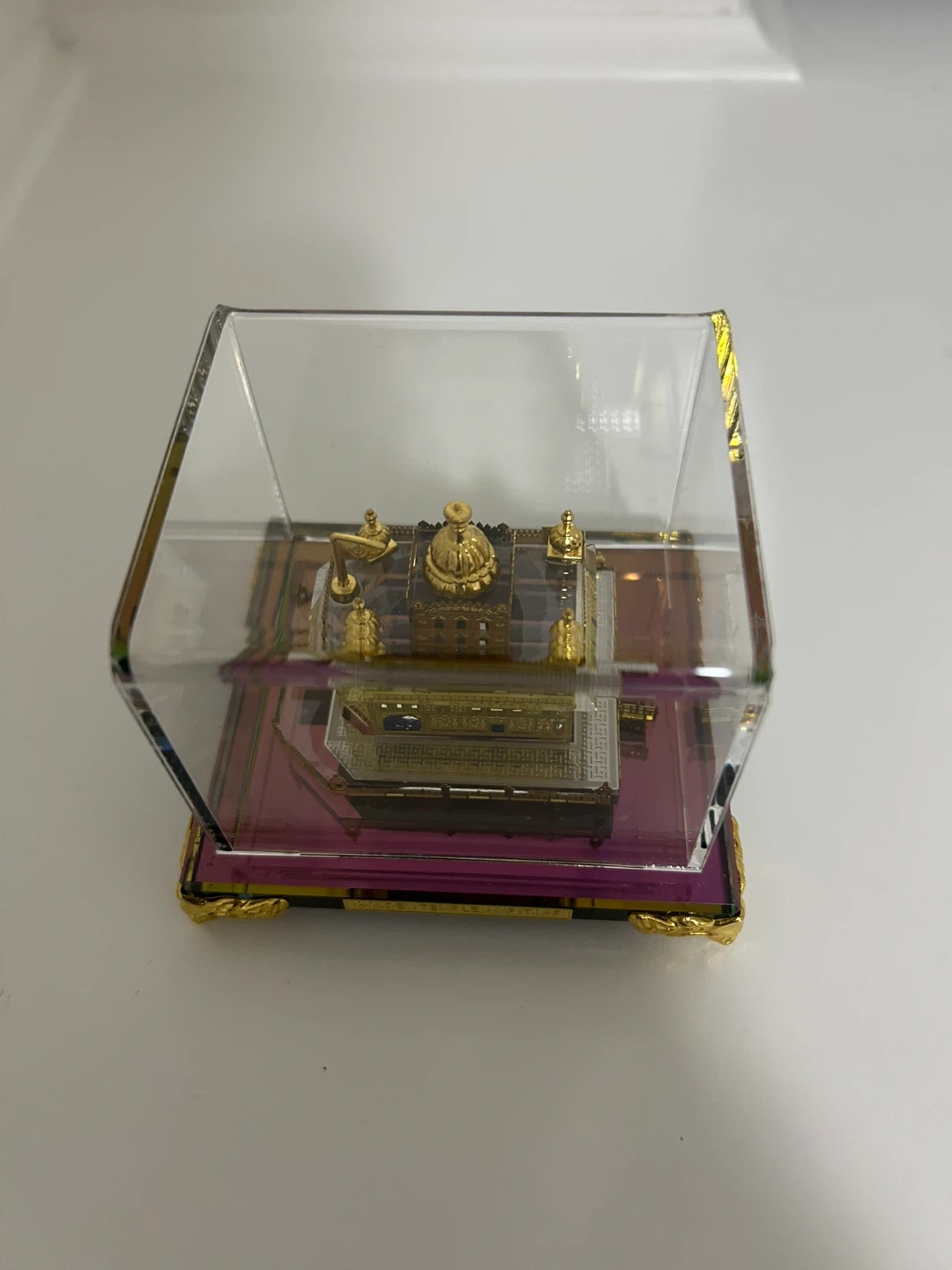 Selling a beautiful miniature replica of the Golden Temple, displayed in a clear protective case. It's a lovely piece for any collection or as a decorative item!