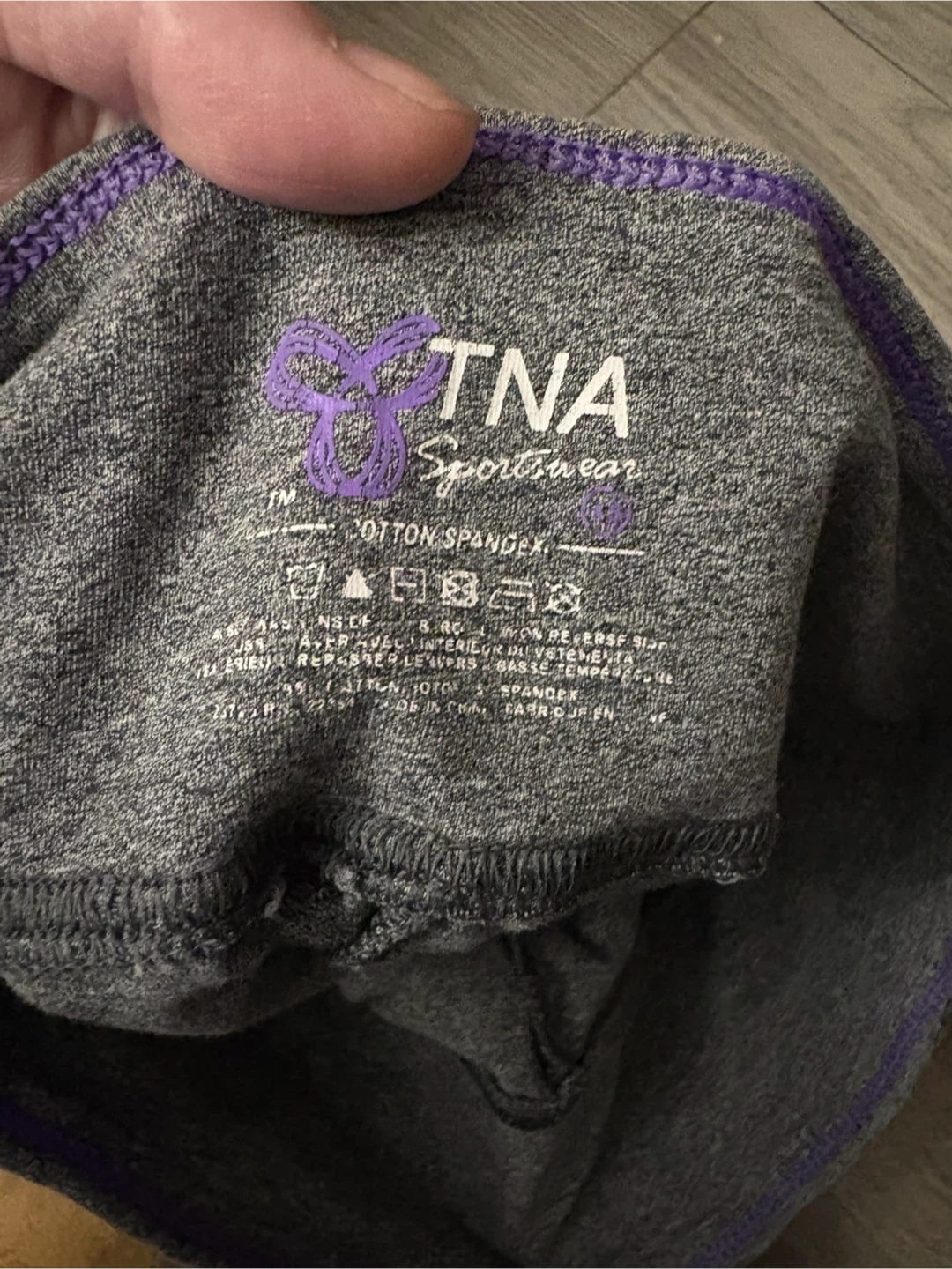 Selling a pair of TNA Sportswear leggings in grey. They're made from a cotton and spandex blend, making them comfy for workouts or just lounging around! $10