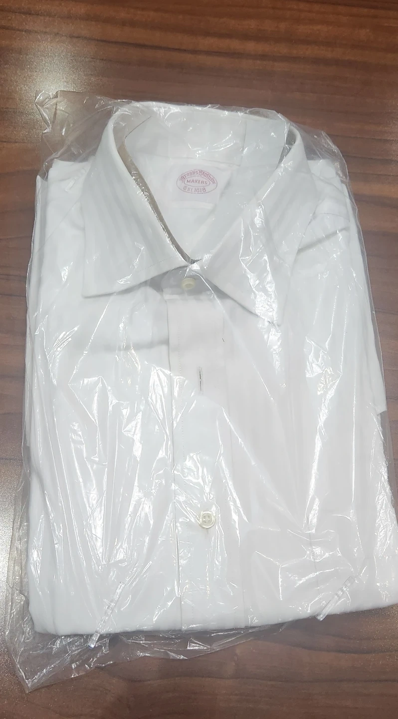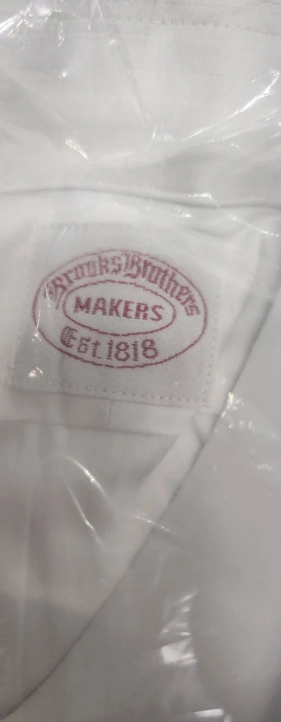 Selling a brand new Brooks Brothers dress shirt still in its original packaging! It's a classic white colour, perfect for any occasion. Feel free to reach out if you're interested!