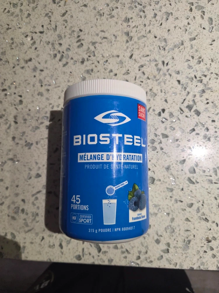 Selling a BioSteel Hydration Mix in blue raspberry flavour. This container has 45 portions. It's a natural health product that's sugar-free! Opened recently but did not use any! Got it from a hockey tournament