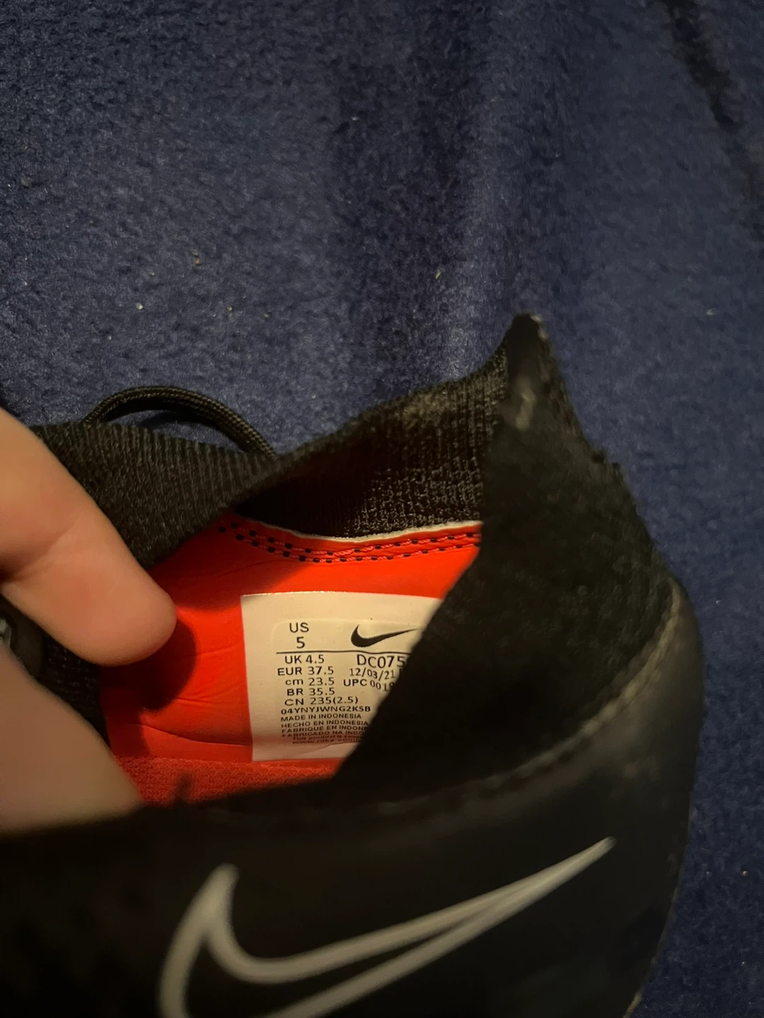 Selling a pair of Nike Phantom soccer cleats. They are black with red details and are a US size 5. Please see photos for condition!