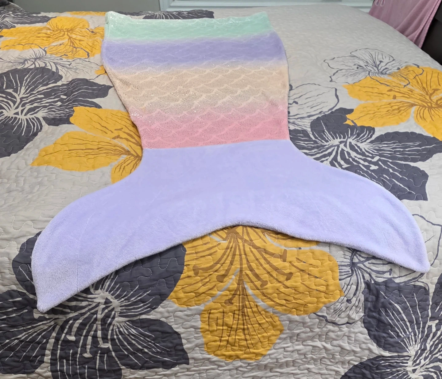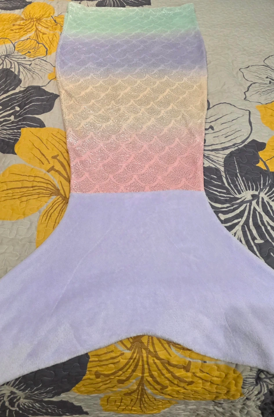 Pastel coloured mermaid tail blanket. Great for lounging around! Good for any size- up to 6 feet tall.