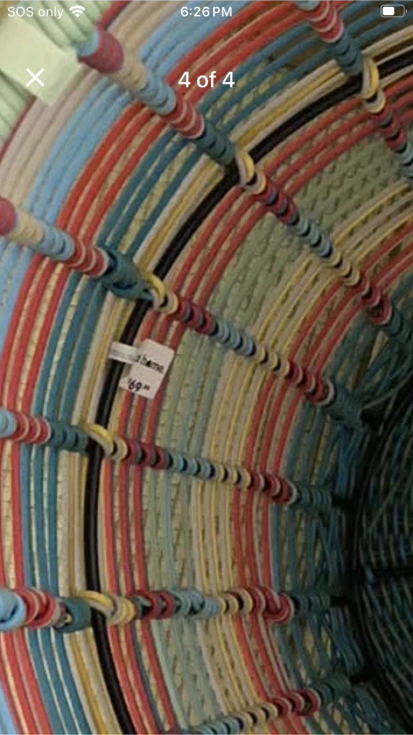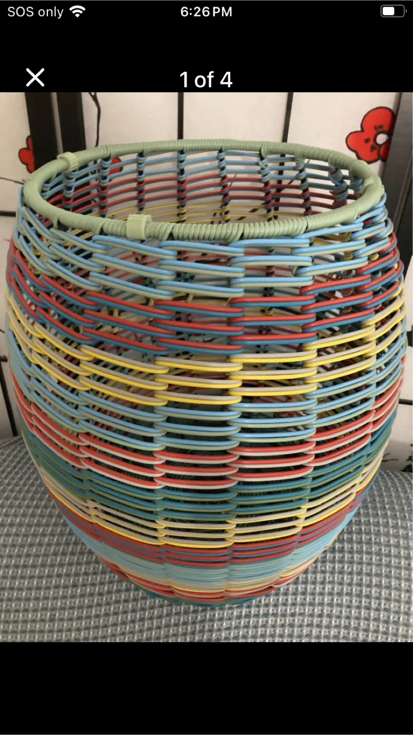 This is a colorful woven basket that would look great in any room! It features a variety of colors including red, yellow, blue, and green. Originally bought for $69.