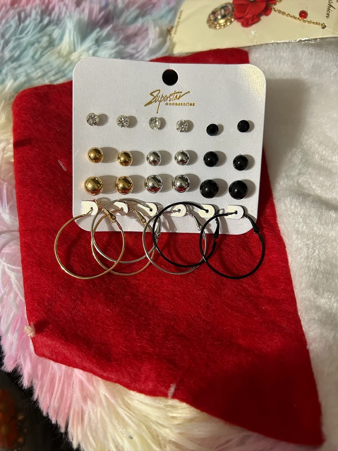 Selling a set of Superstar Accessories earrings! This set includes a variety of styles and colors. Perfect for adding some sparkle to your look