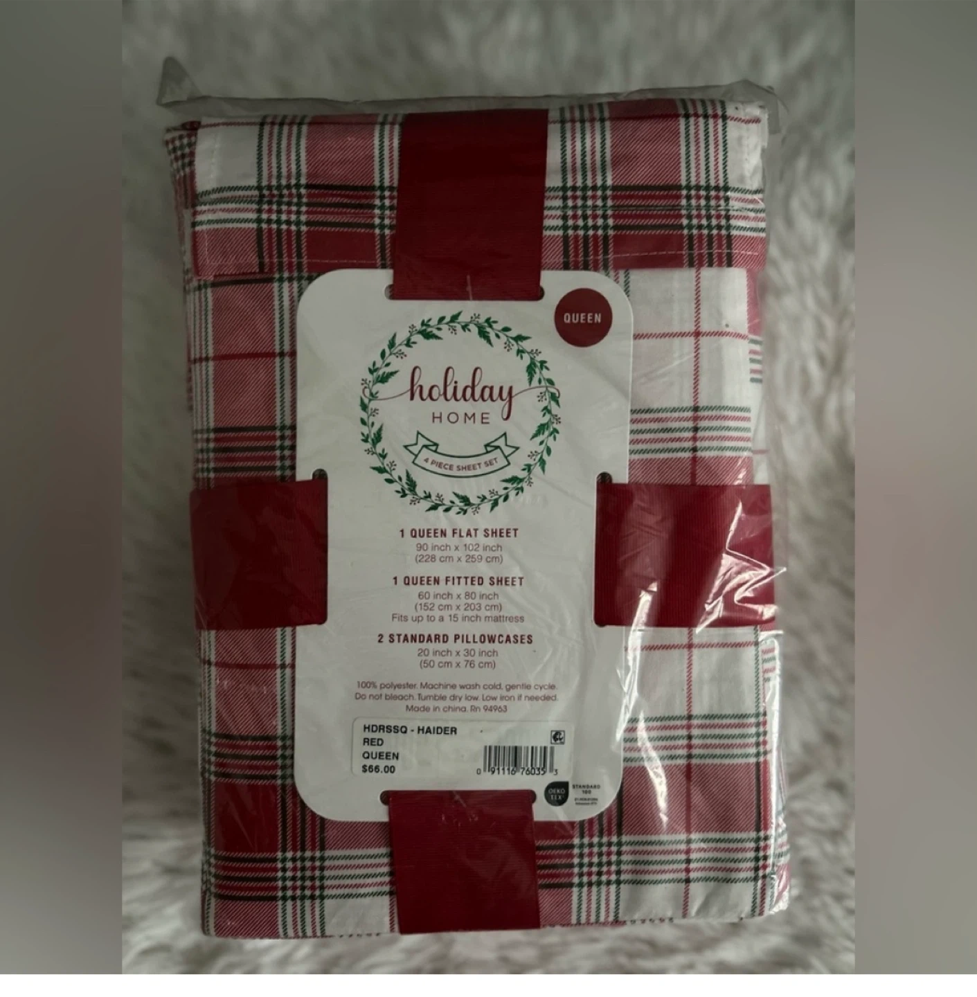 I have a brand new Holiday Home 4-piece queen sheet set for sale! It's a red plaid pattern and includes:
