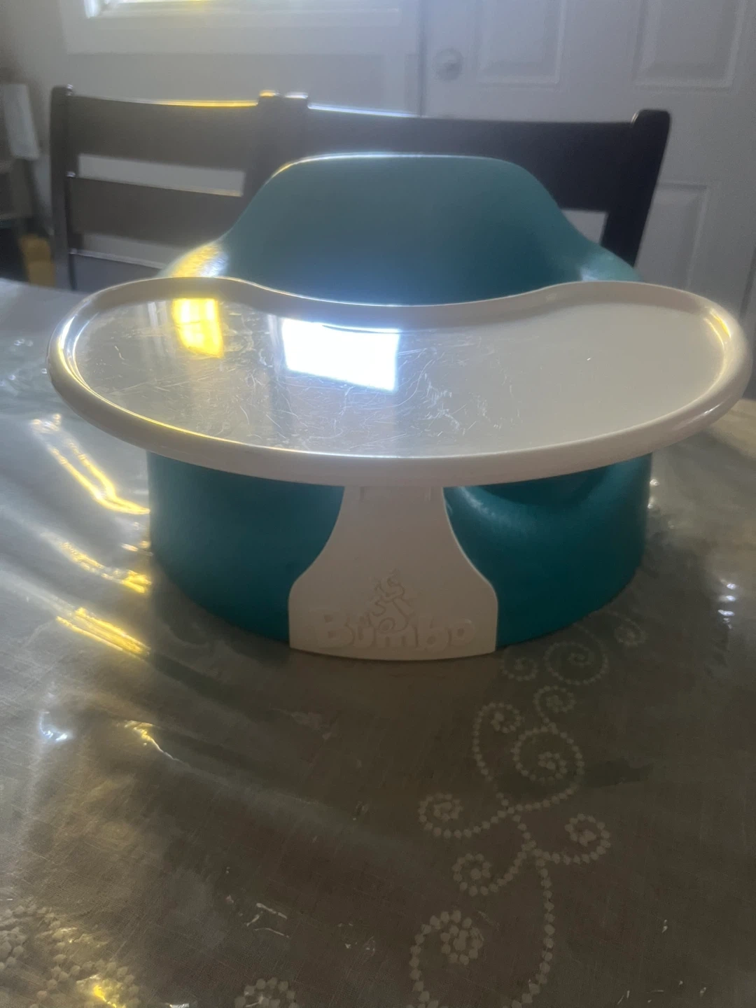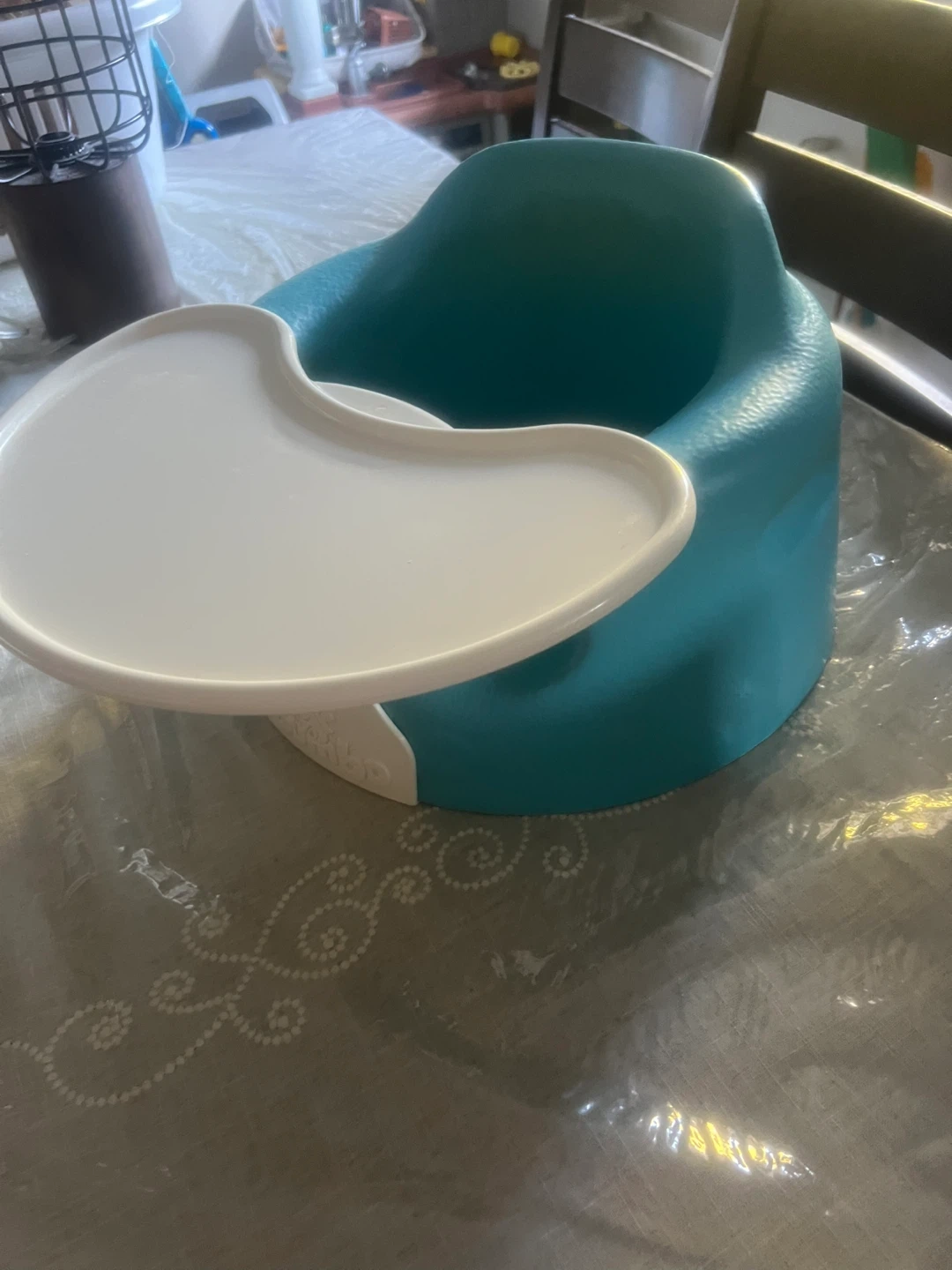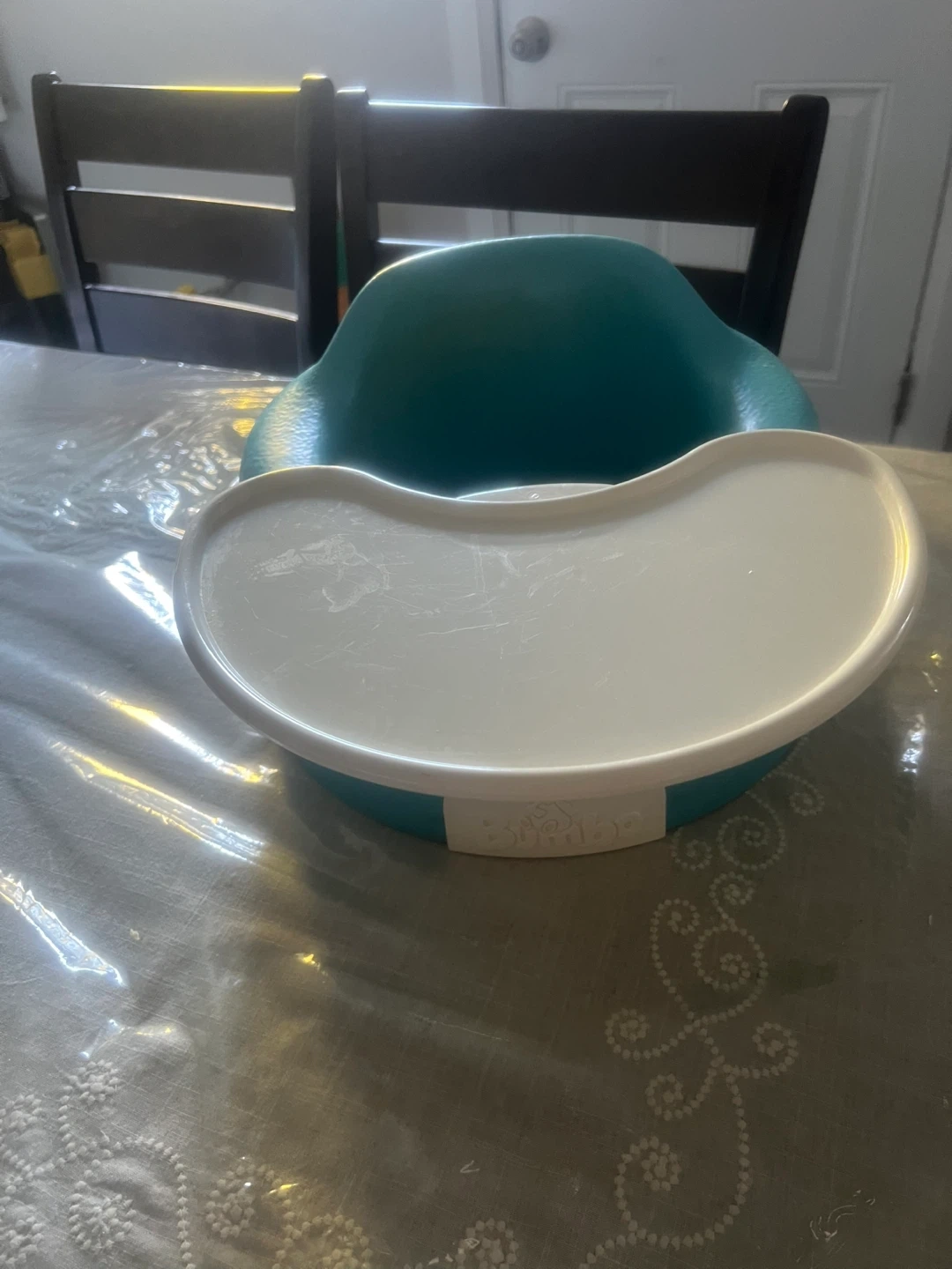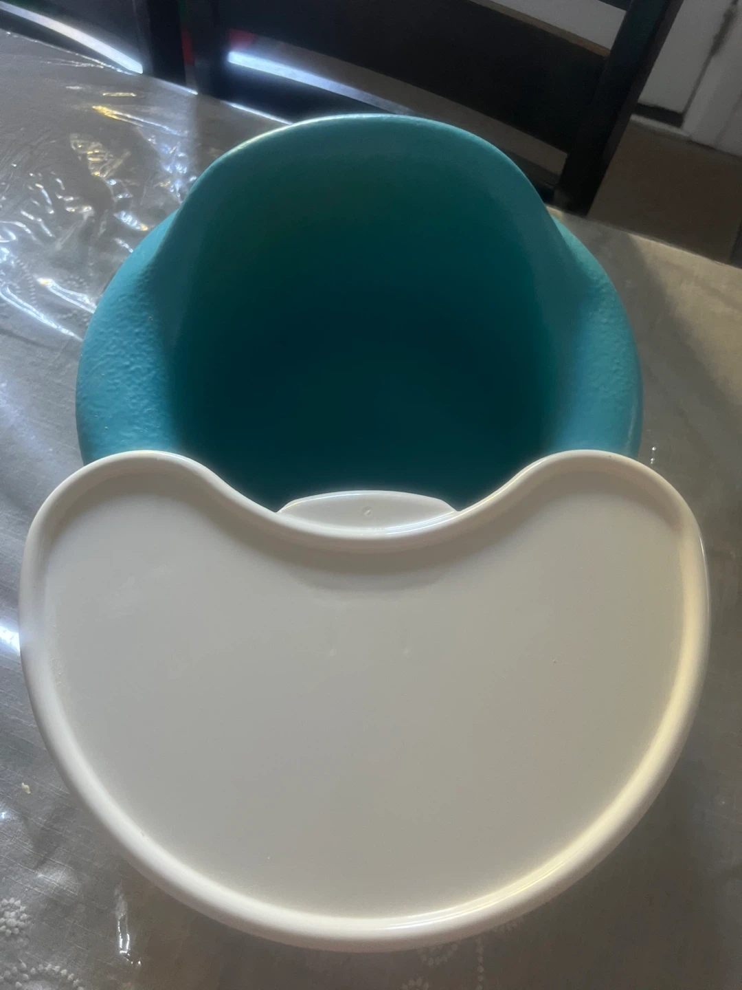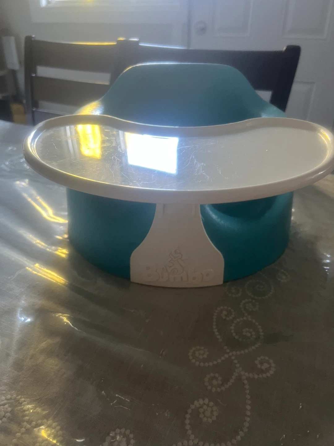 Selling a Bumbo floor seat in aqua with the tray included. It's in great shape and perfect for little ones who are learning to sit up. The seat provides support and the tray is handy for snacks or toys!