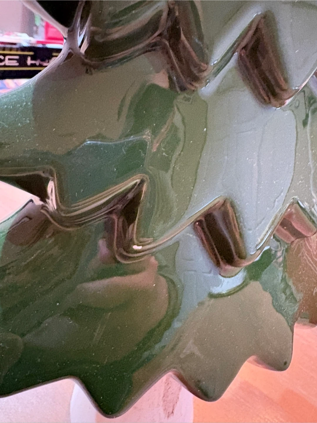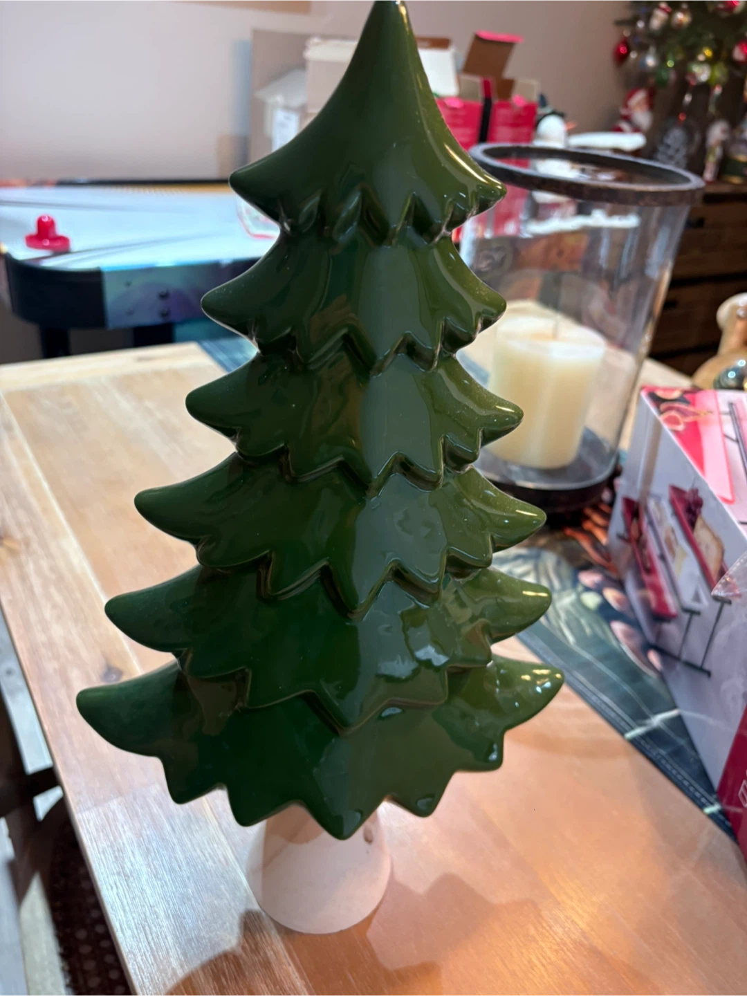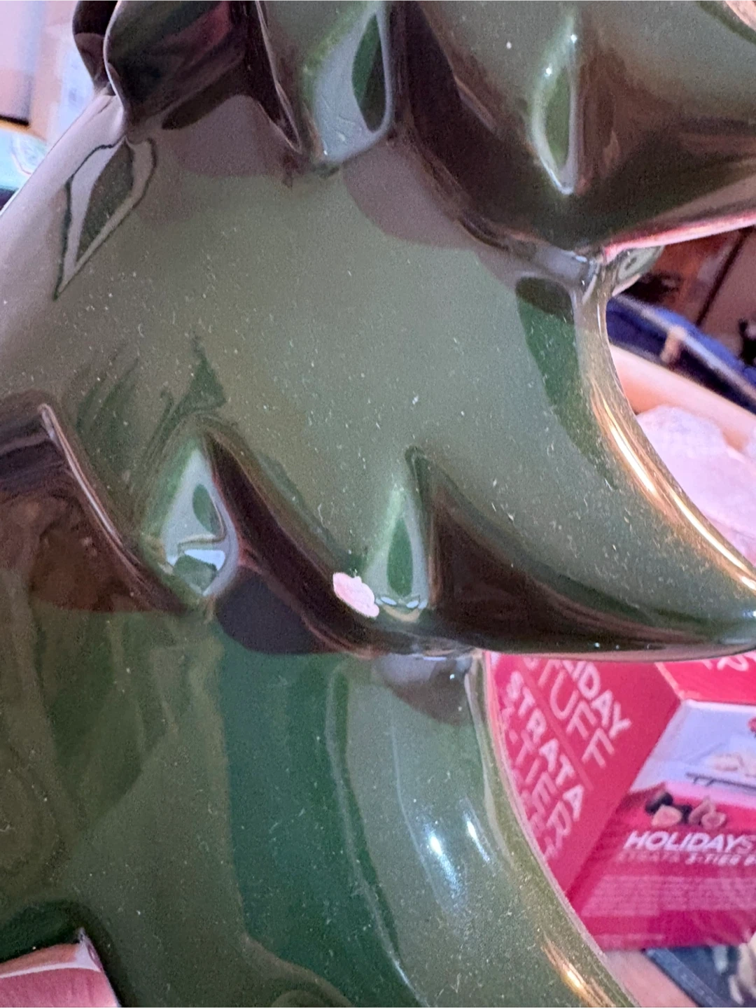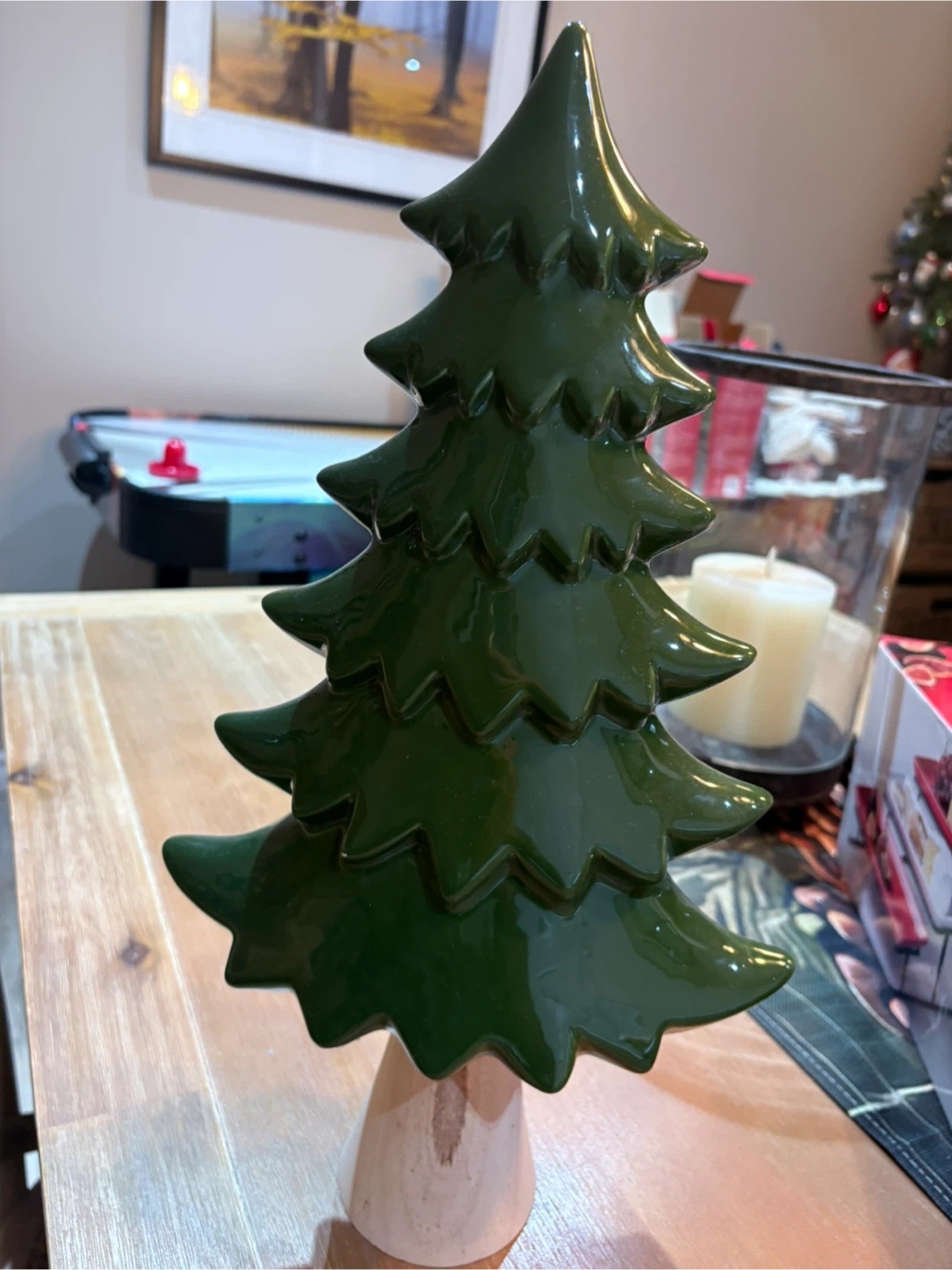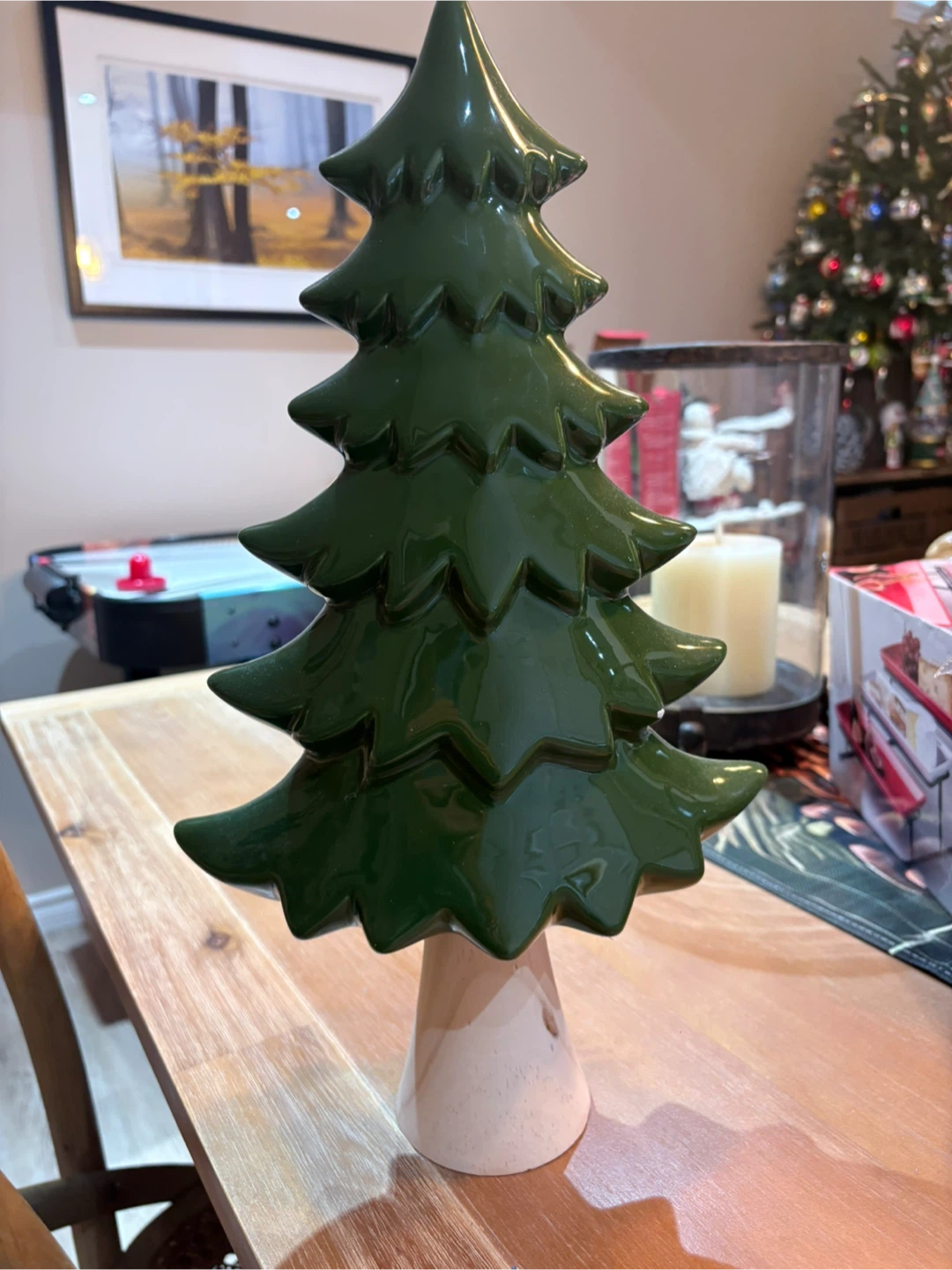 Here's a charming green ceramic Christmas tree decoration! It has a few small imperfections, as shown in the pictures, but it's still a lovely piece to add to your holiday decor