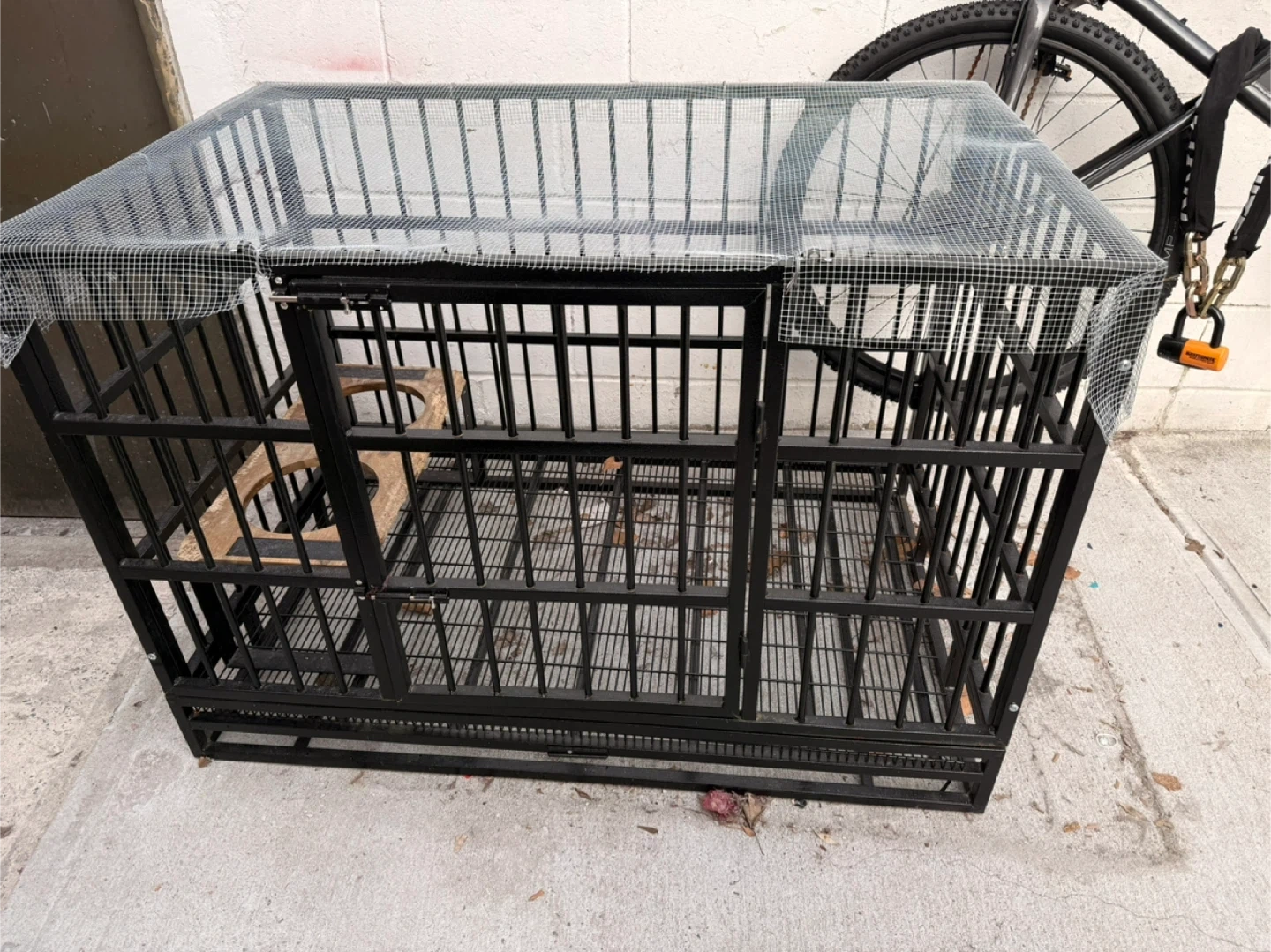 Selling a used black metal dog cage. It has a wire mesh top and it doesn’t come with the wooden platform inside. Good for medium to large dogs