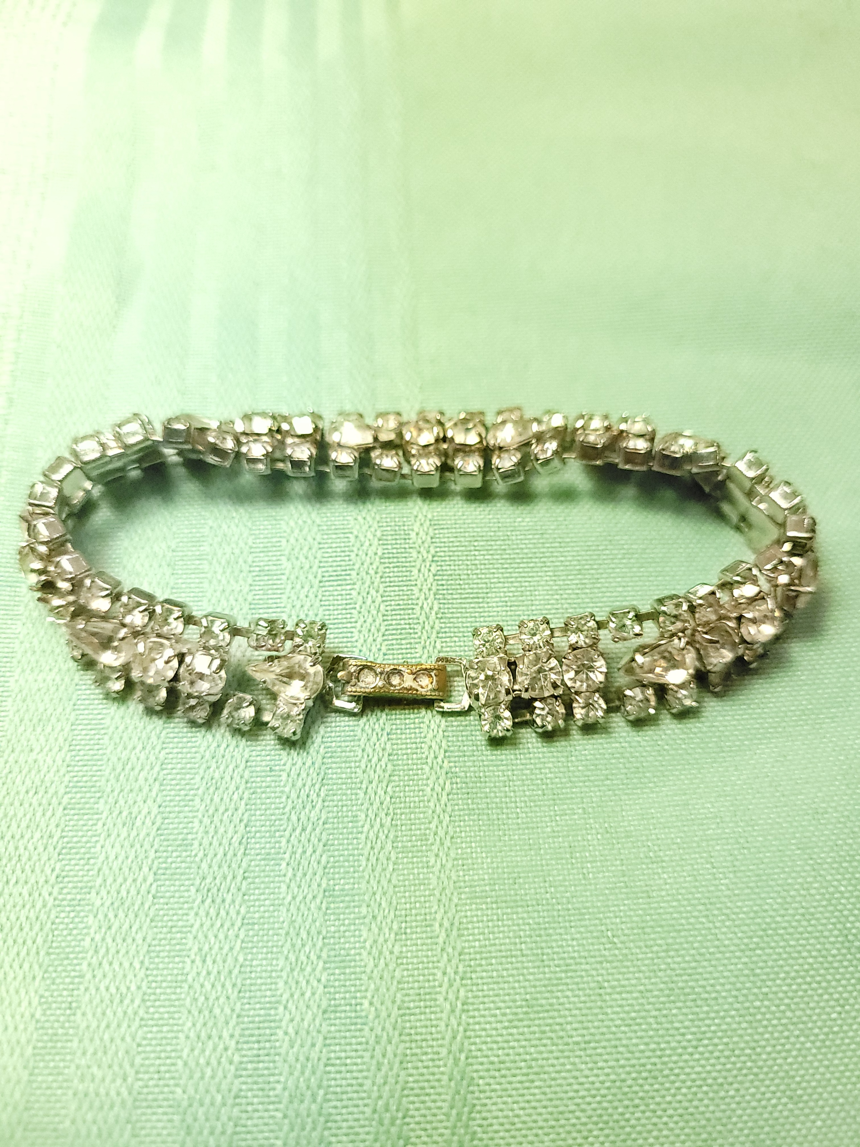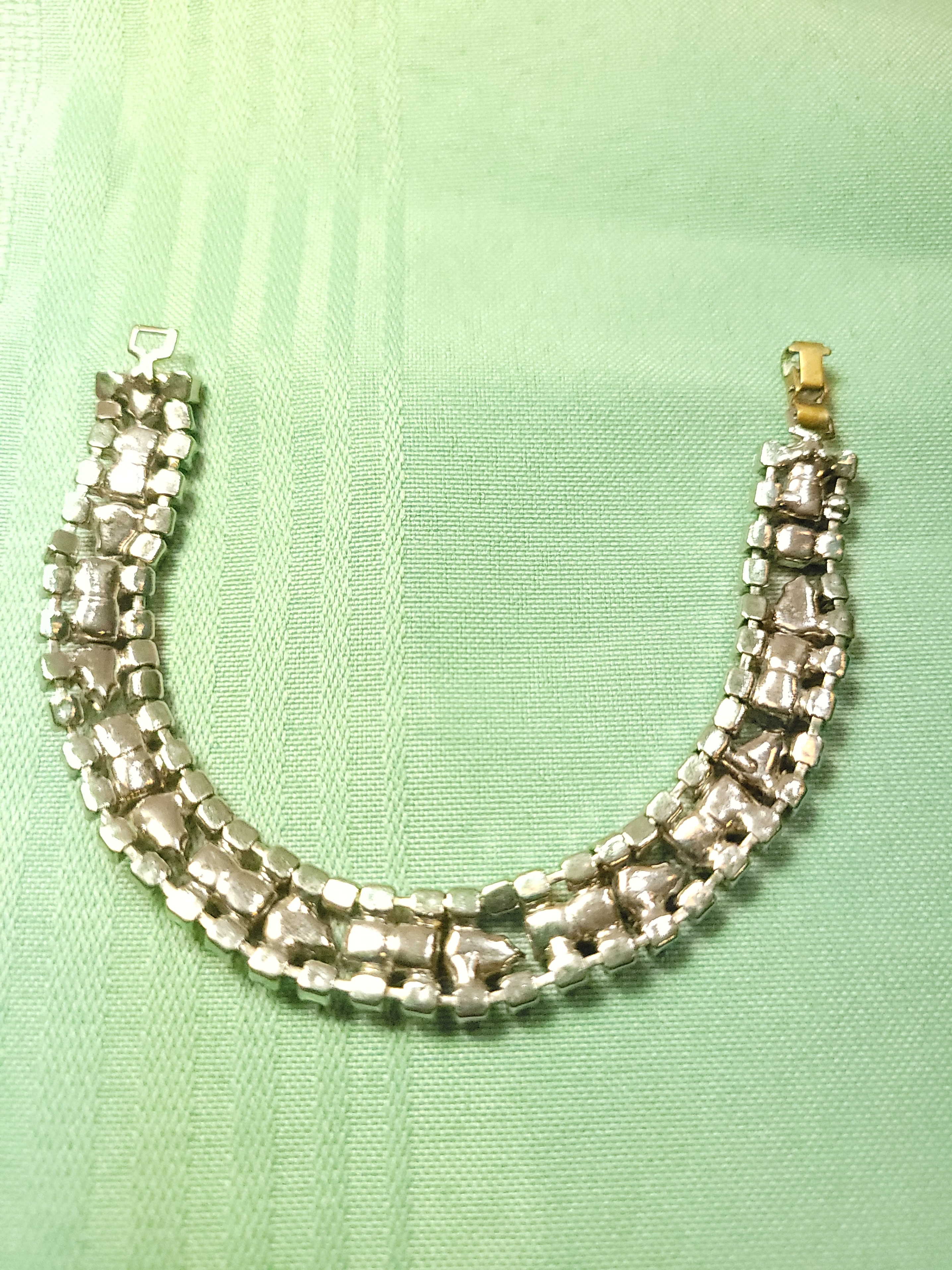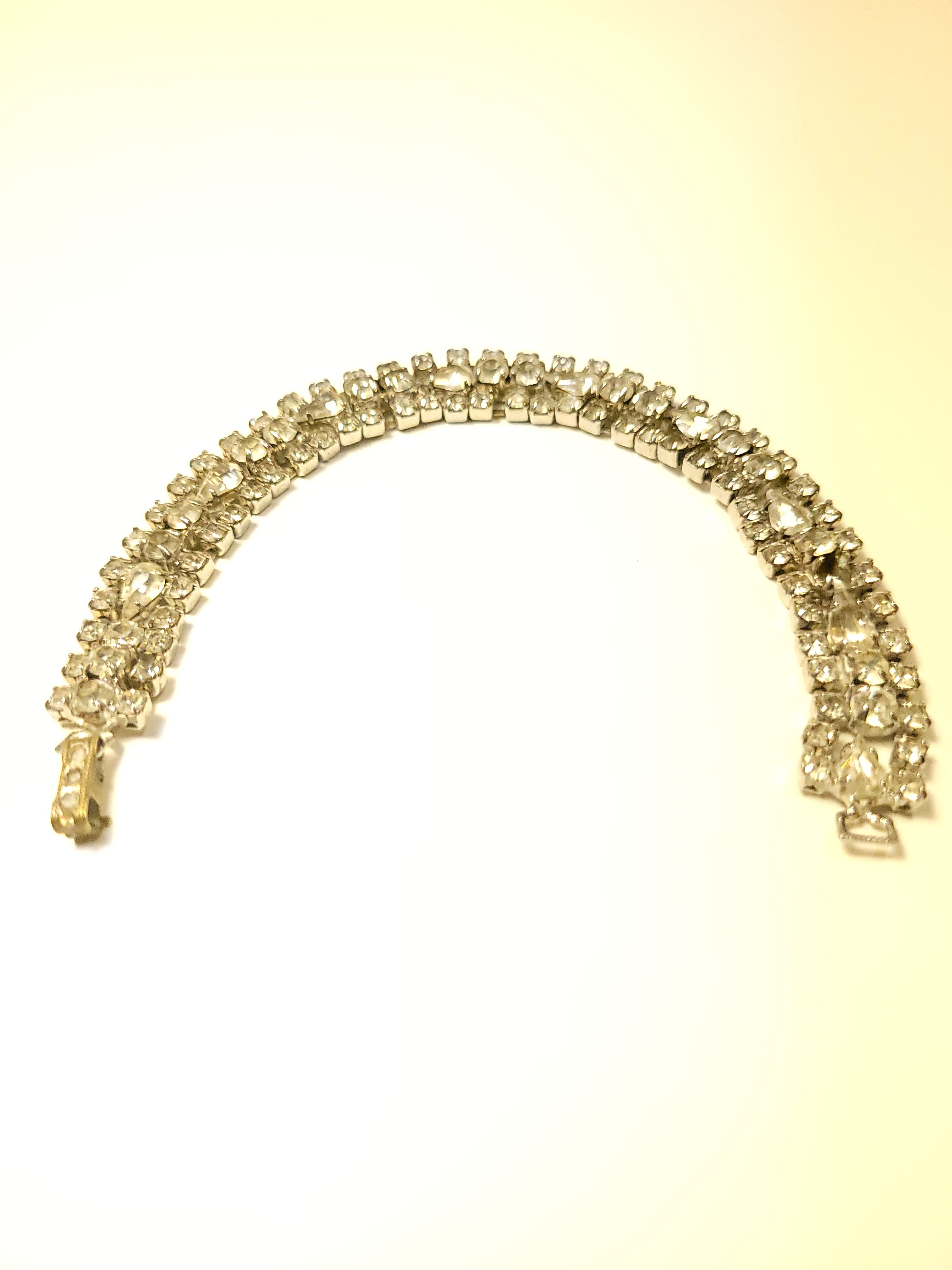 1950s Rhodium Plated Rhinestone Bracelet 7.5" Clear Large