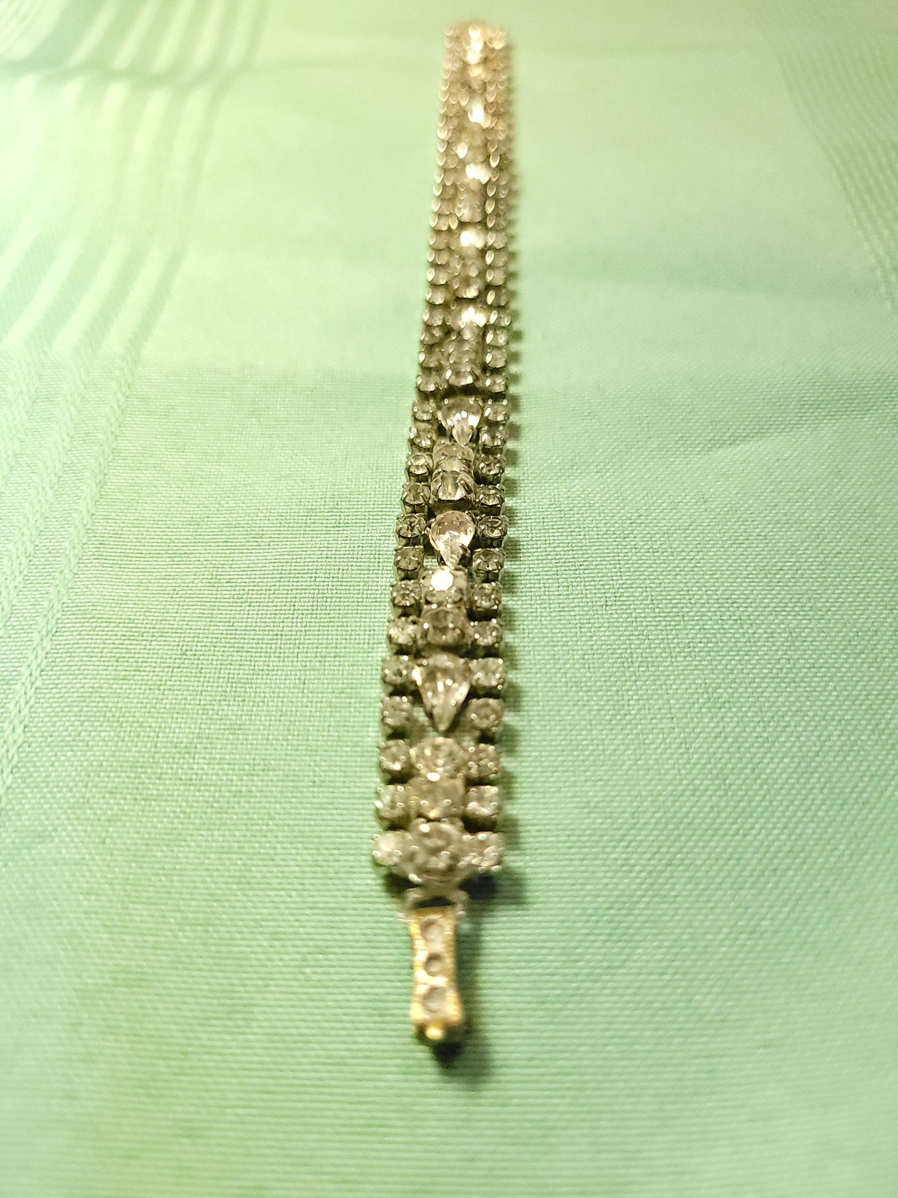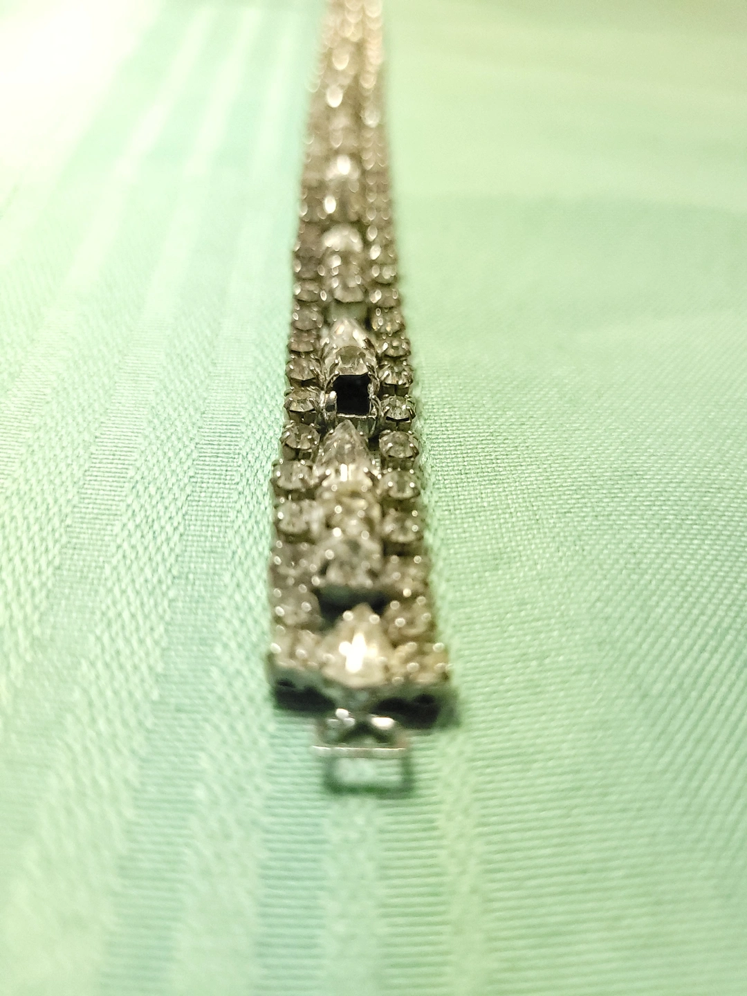 Condition Report: The bracelet is in Good Vintage Condition with light wear. There is no significant "graying" or "yellowing" of the crystals. The rhodium plating is intact with no pitting or base-metal show-through. The clasp functions perfectly.