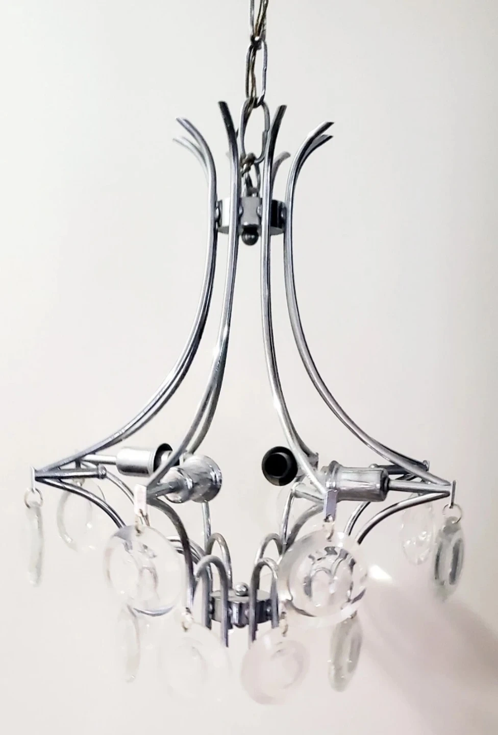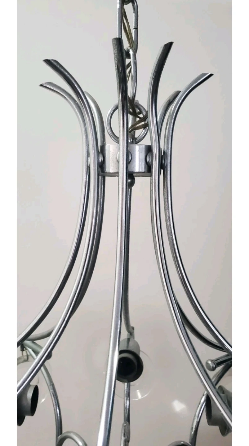 2) CIRCA 1960's - Glass and Chrome - Sciolari - Ceiling Light Fixture - 4 Bulb Ceiling Mount - Hardwired - 20" long (needs rewiring)