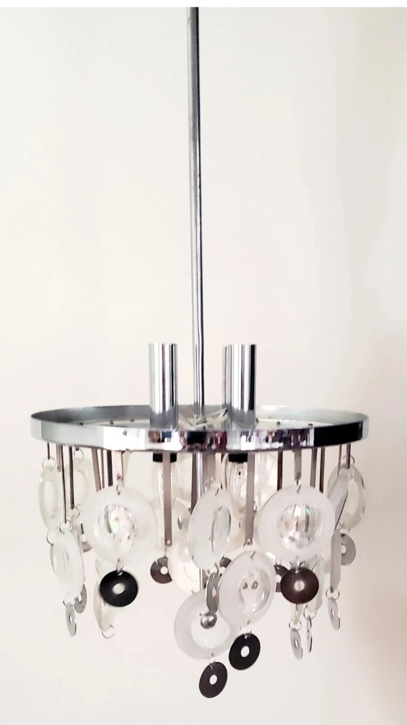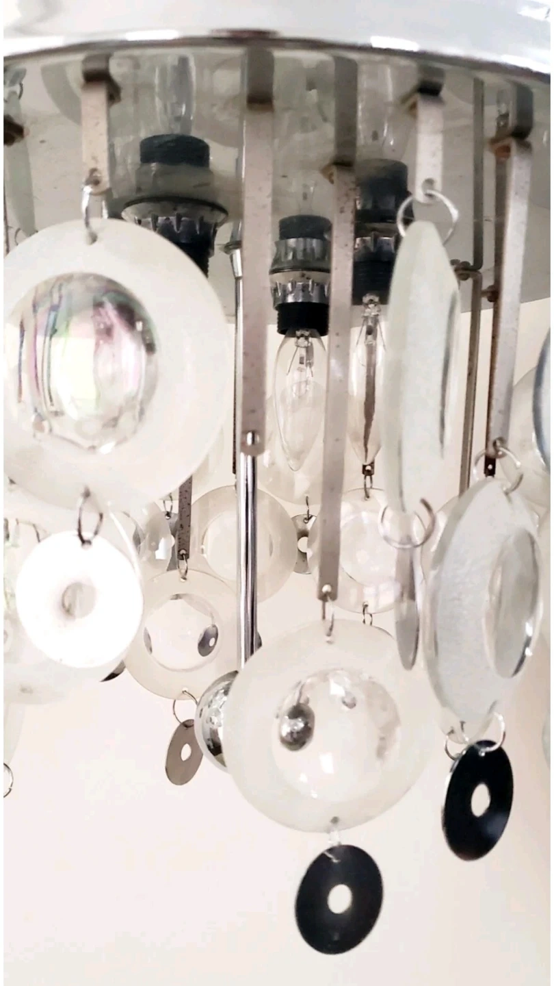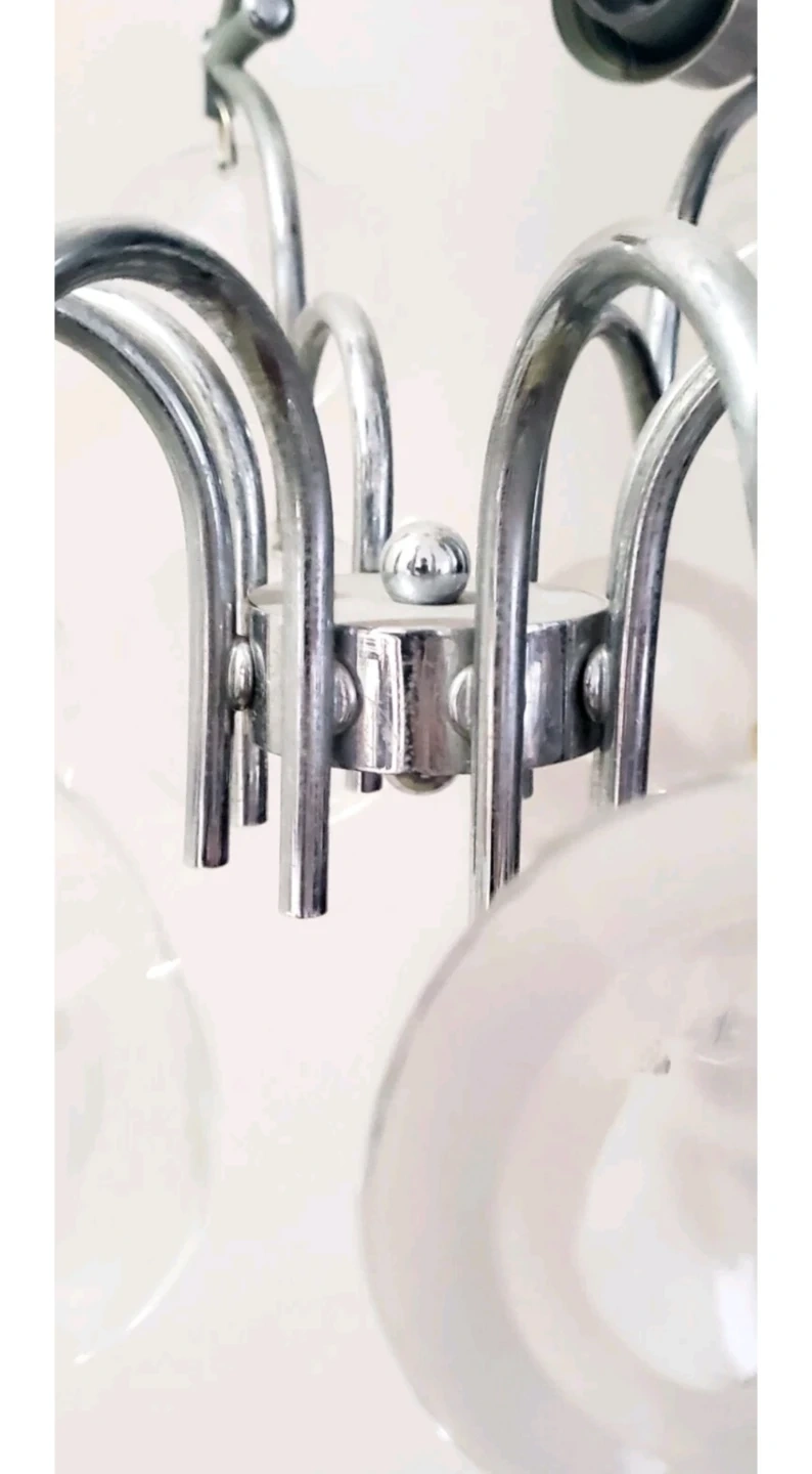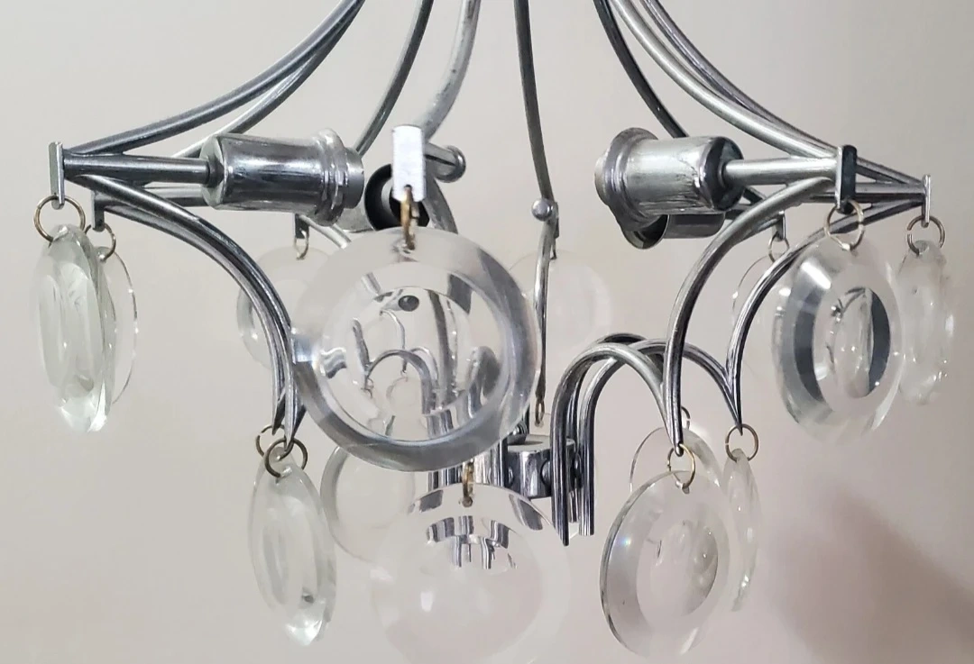 1) CIRCA 1960's - Glass and Chrome - Sciolari - Ceiling Light Fixture - 4 Bulb Ceiling Mount - Hardwired - 33" long