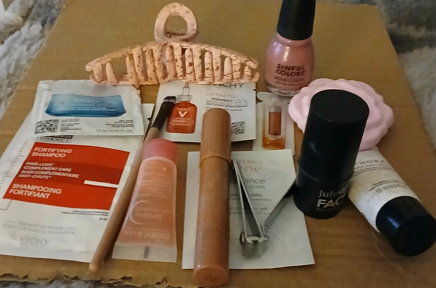 Selling a mixed lot of beauty and cosmetic items, perfect for trying out new products or stocking up on essentials! Included are items from brands like Vichy, Bioderma, Sinful Colors, and July Star. Great for anyone looking to experiment with different makeup and skincare options