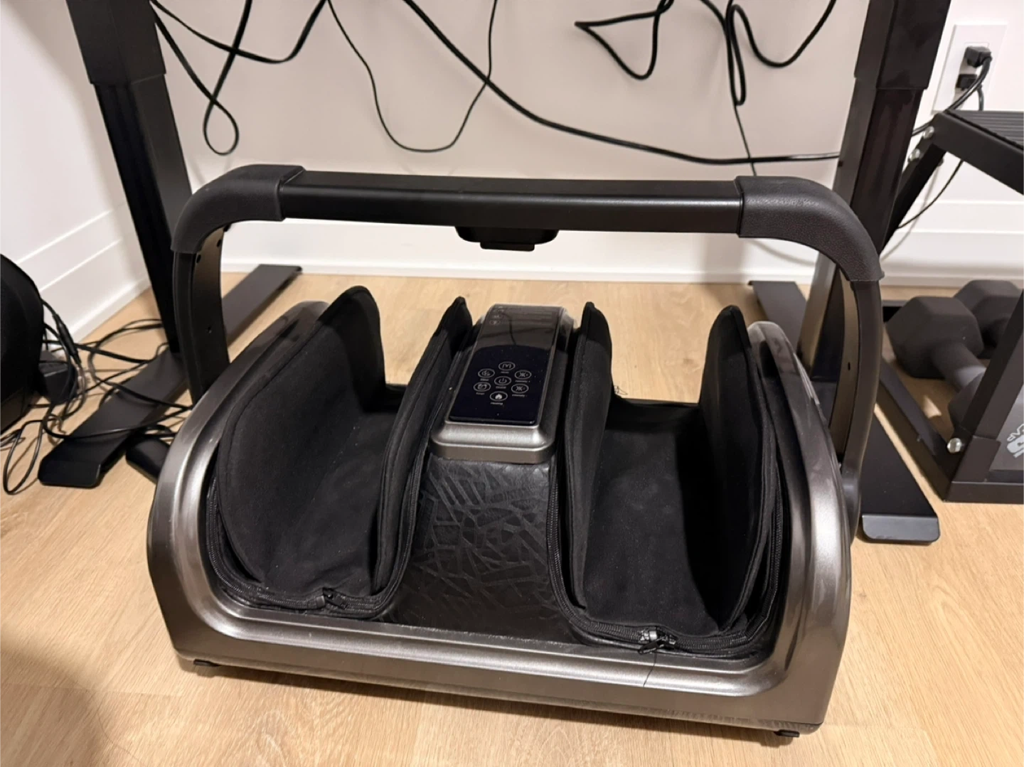 Selling a foot massager in great condition. It has a control panel with different settings to help you relax after a long day. Perfect for home or office use!