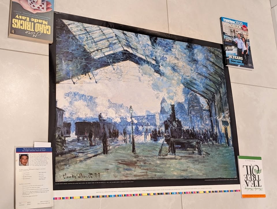 Monet chose to focus his attention here on the glass-and-iron train shed, where he found an appealing combination of artificial and natural effects: the rising steam of locomotives trapped within the structure, and daylight penetrating the large, glazed sections of the roof.