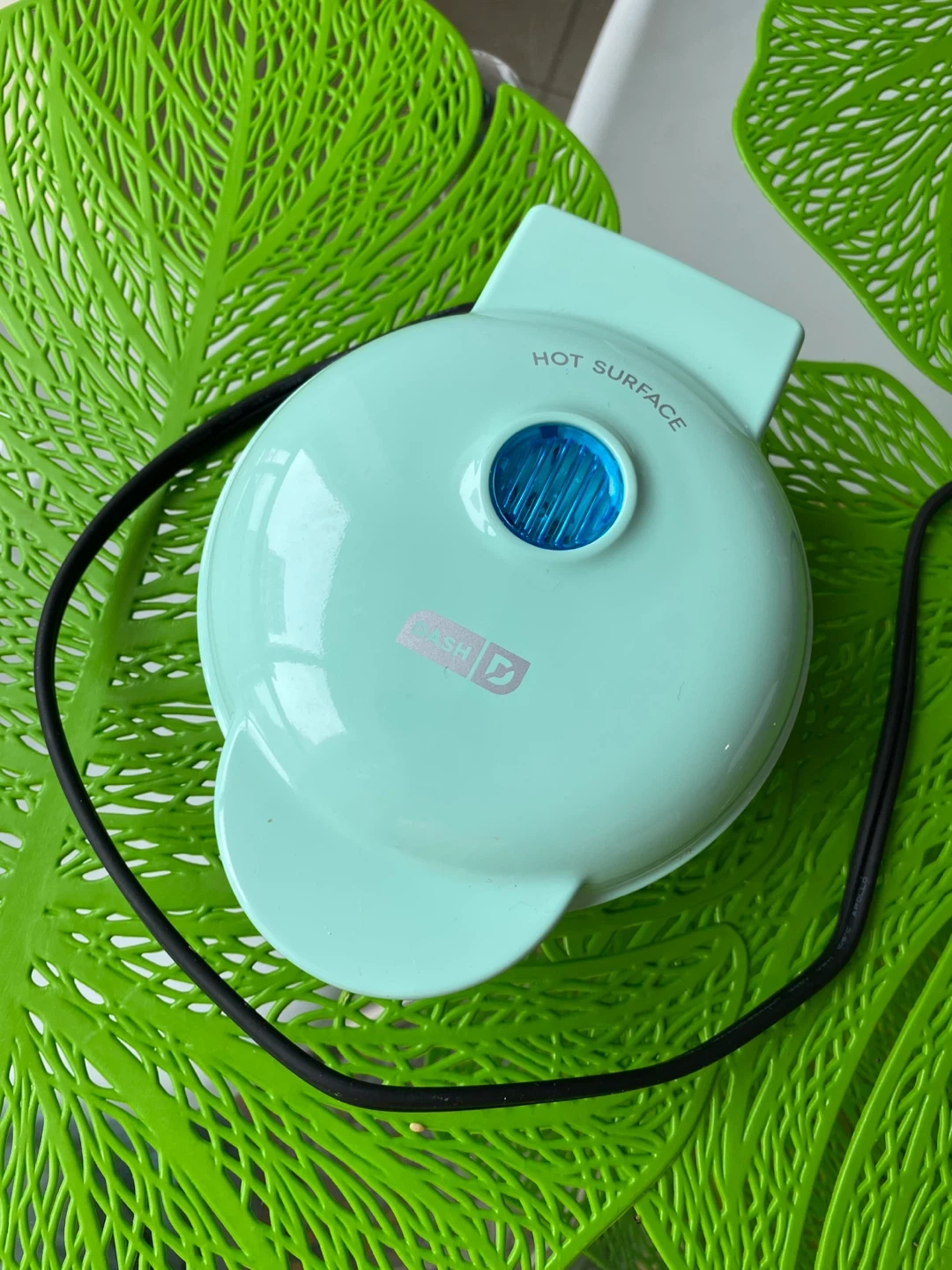 I'm selling a Dash Mini Waffle Maker in aqua! It's perfect for making single-serve waffles, and its compact size makes it easy to store. It heats up quickly, so you can enjoy a tasty waffle in minutes. Great for small kitchens or anyone who loves a quick breakfast!