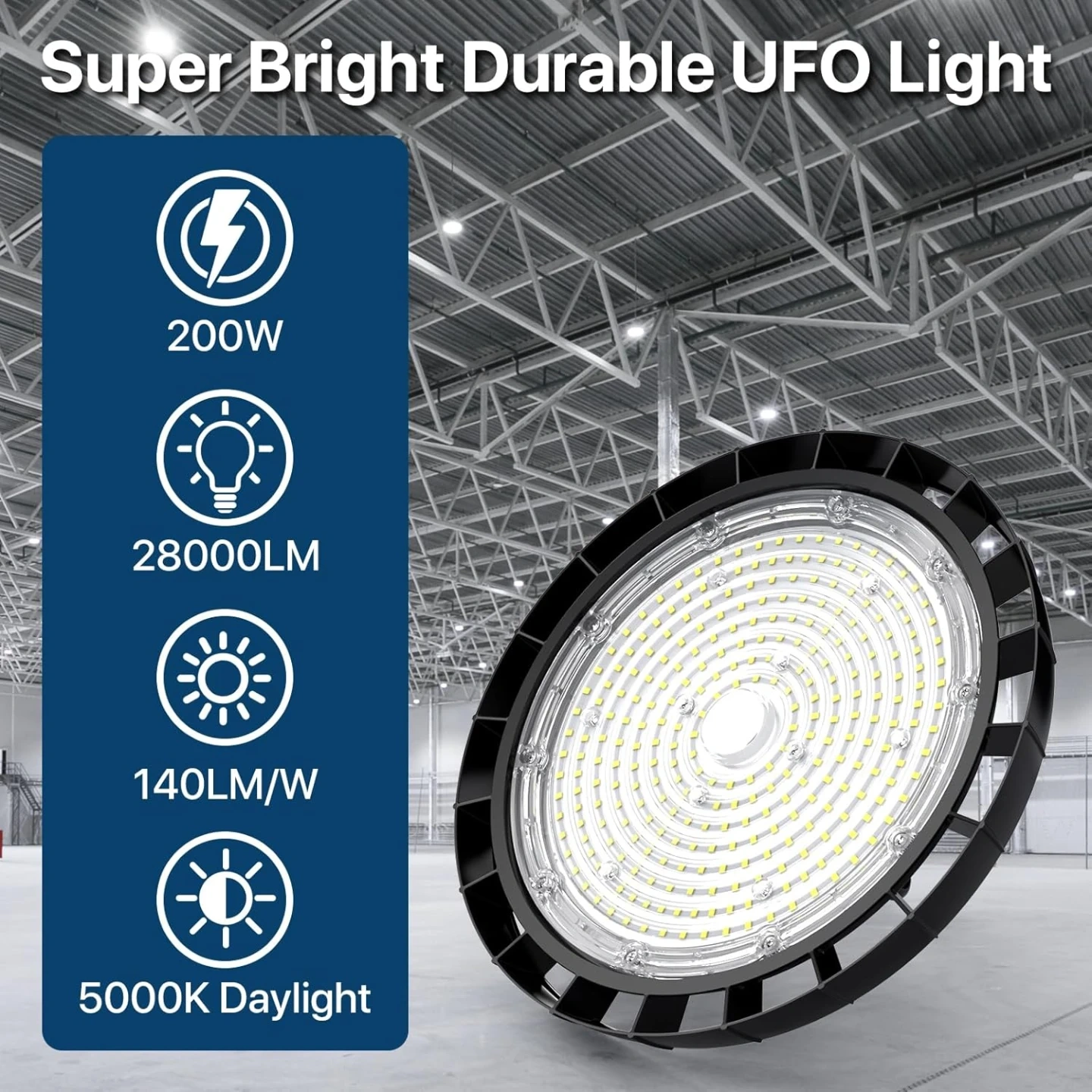 Unmatched Brightness & Energy Efficiency: Experience superior illumination with HYPERLITE 200W led high bay lights, delivering an outstanding 28000 lumens at 5000K daylight. With an efficiency of 140LM/W, it replaces 1000W HID/HPS fixtures, instantly reducing energy costs by up to 85% while ensuring bright, clear, and consistent lighting for any space.