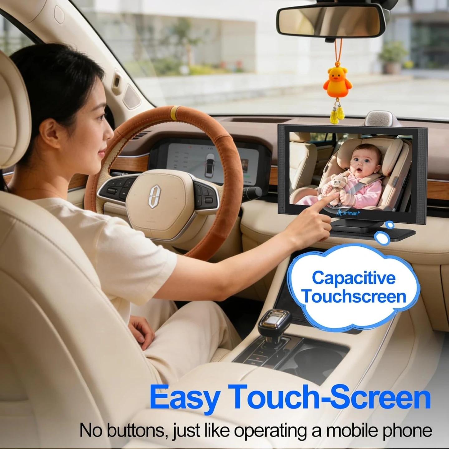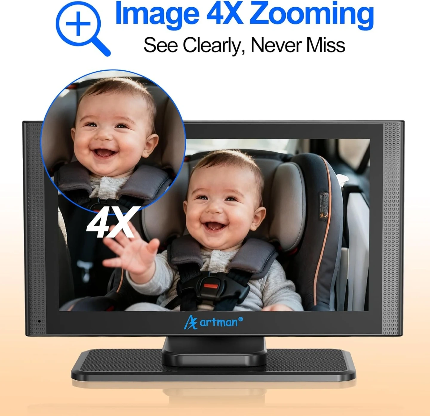 High-Quality IPS Touch Screen: Unlike most button-controlled monitors on the market, the Artman baby car camera monitor adopts high-quality IPS and the latest touch technology, allowing you to control the monitor as easily and conveniently as operating a smart phone. You can easily switch display modes, adjust brightness and 3x zoom through our touch screen, enabling you to view the rear seat baby or pet in more perspectives and with greater clarity.