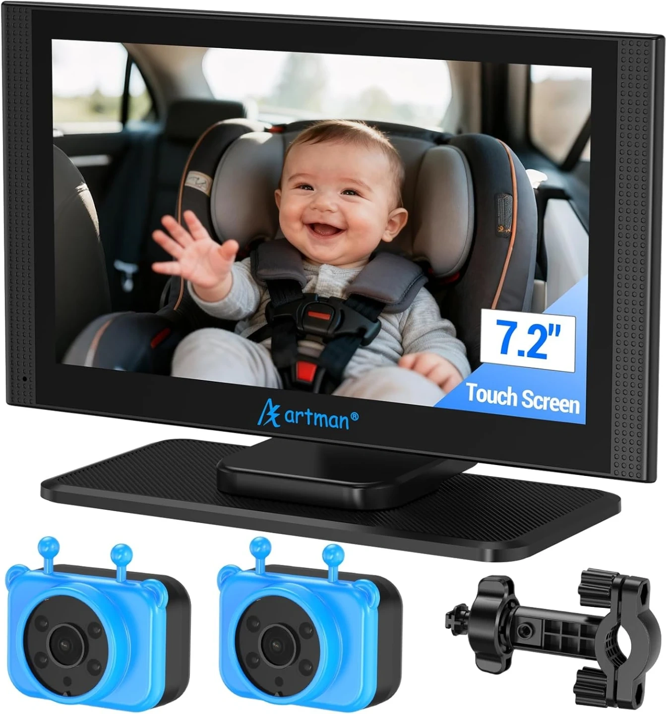 Artman Baby Car Camera, 1440P Baby Car Monitor with 7.2'' HD Touchscreen Split View & 940nm Night Vision - Dual Camera for Backseat with Anti-Shake, for Mom of Twins/Toddlers/Pets, Brand New in the Box/Sealed