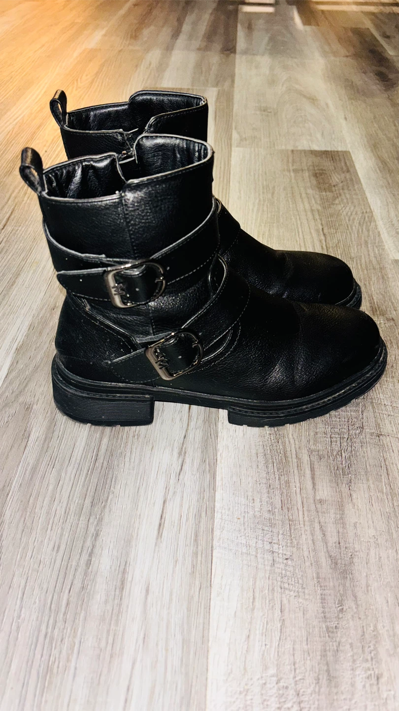 Selling a pair of Mexx black buckle boots in size 7. They're in good condition and have a stylish look with the buckle details. Perfect for adding a bit of edge to your outfit!