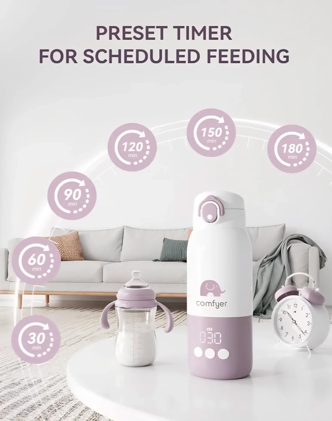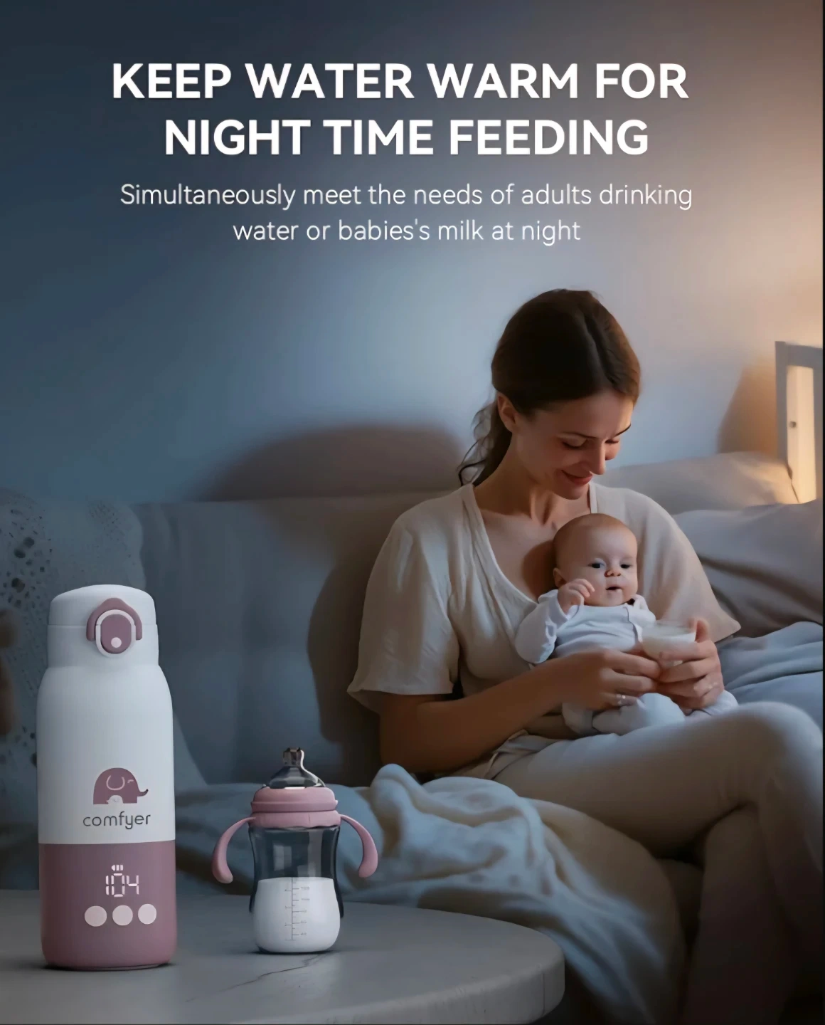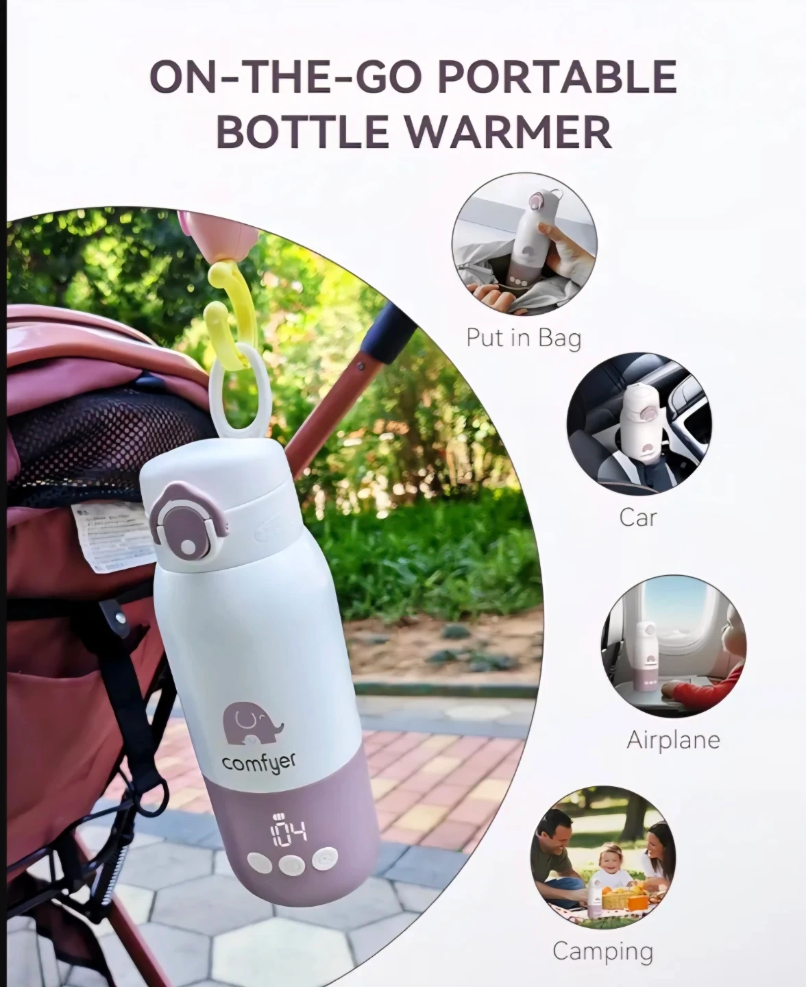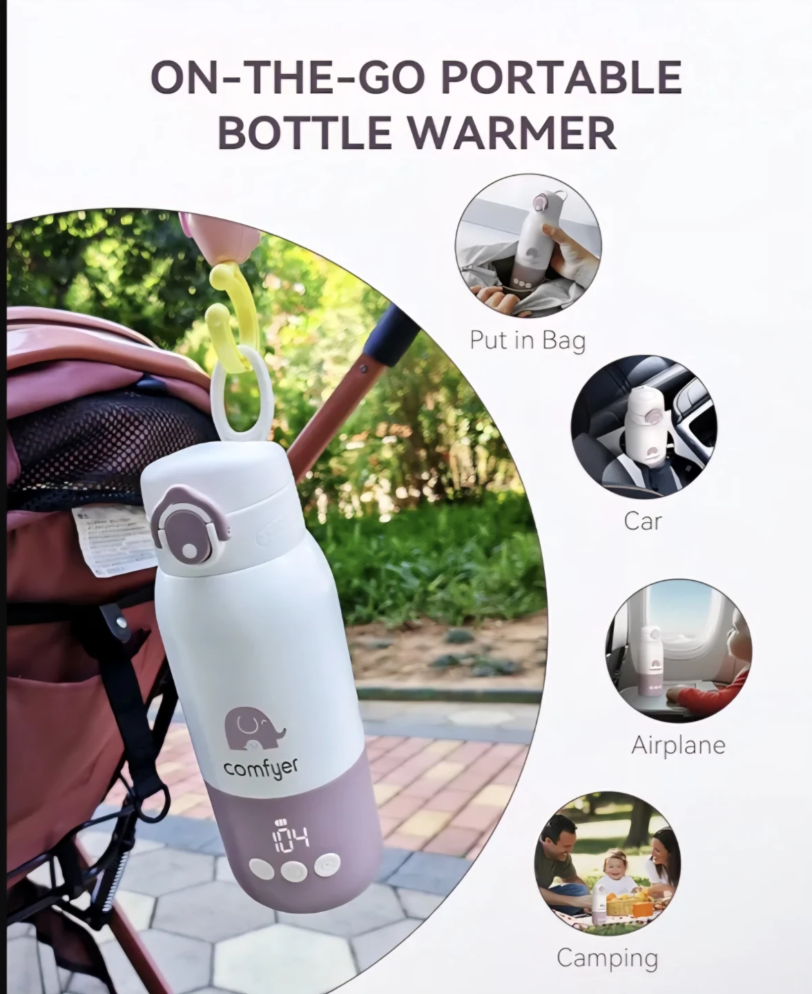 Keep water/milk warm for traveling/night time feeding with this portable bottle warmer! It simultaneously meets the needs of adults drinking water or babies' milk at night. It's great for on-the-go use; you can put it in a bag, use it in the car, on an airplane, or even while camping