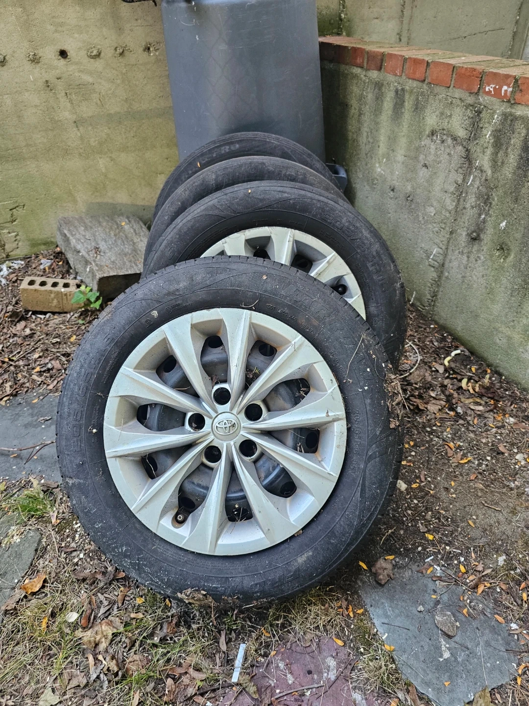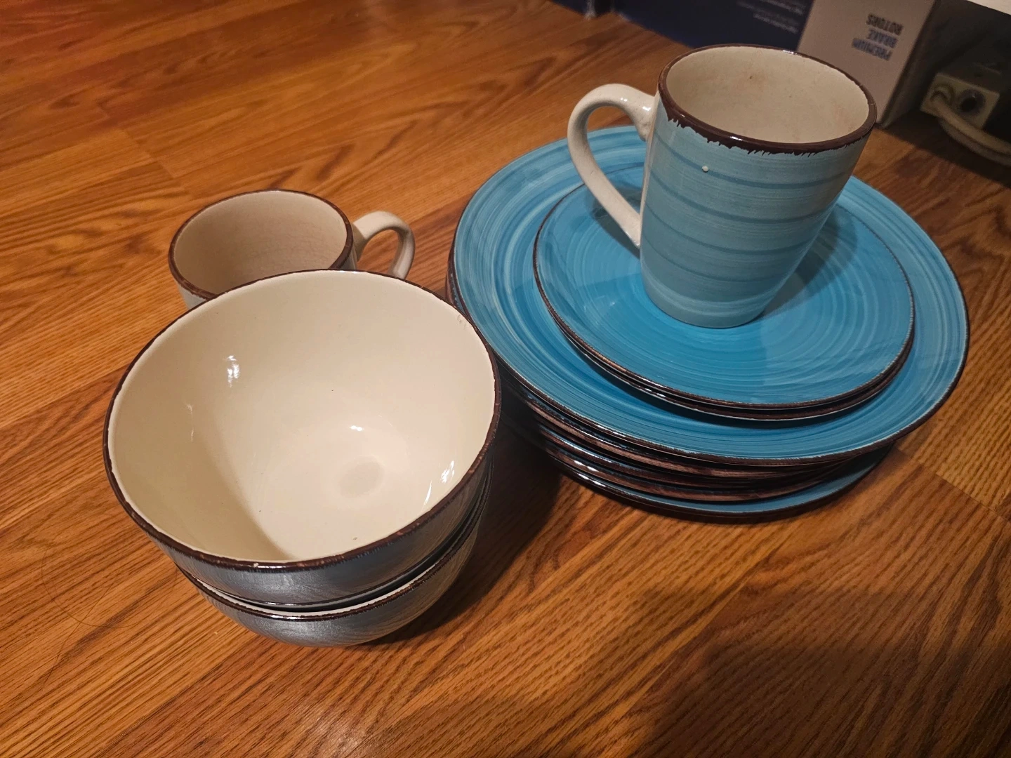 Selling a variety of household items. Includes an Elite Gourmet coffee maker, Promate fins (size L) with a bag, a set of dishes, an HP OfficeJet 3830 printer, and a set of tires.