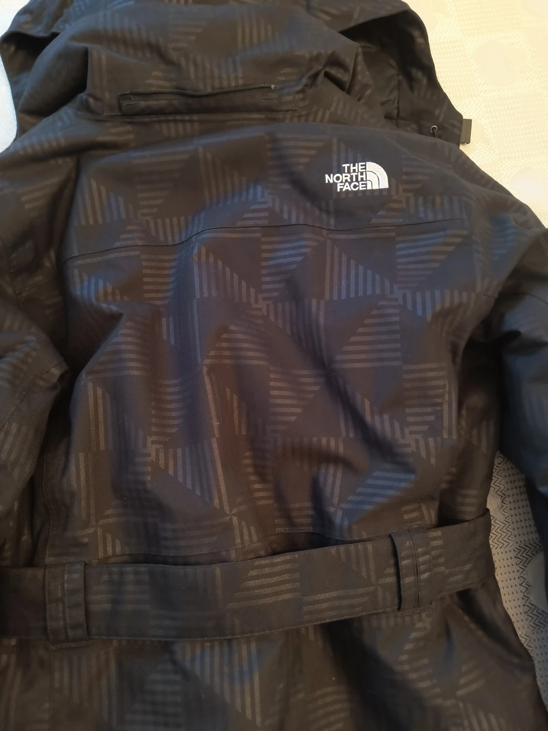 Selling a The North Face puffer jacket in size medium. It's in great condition and has a stylish black patterned design. Perfect for staying warm this winter!