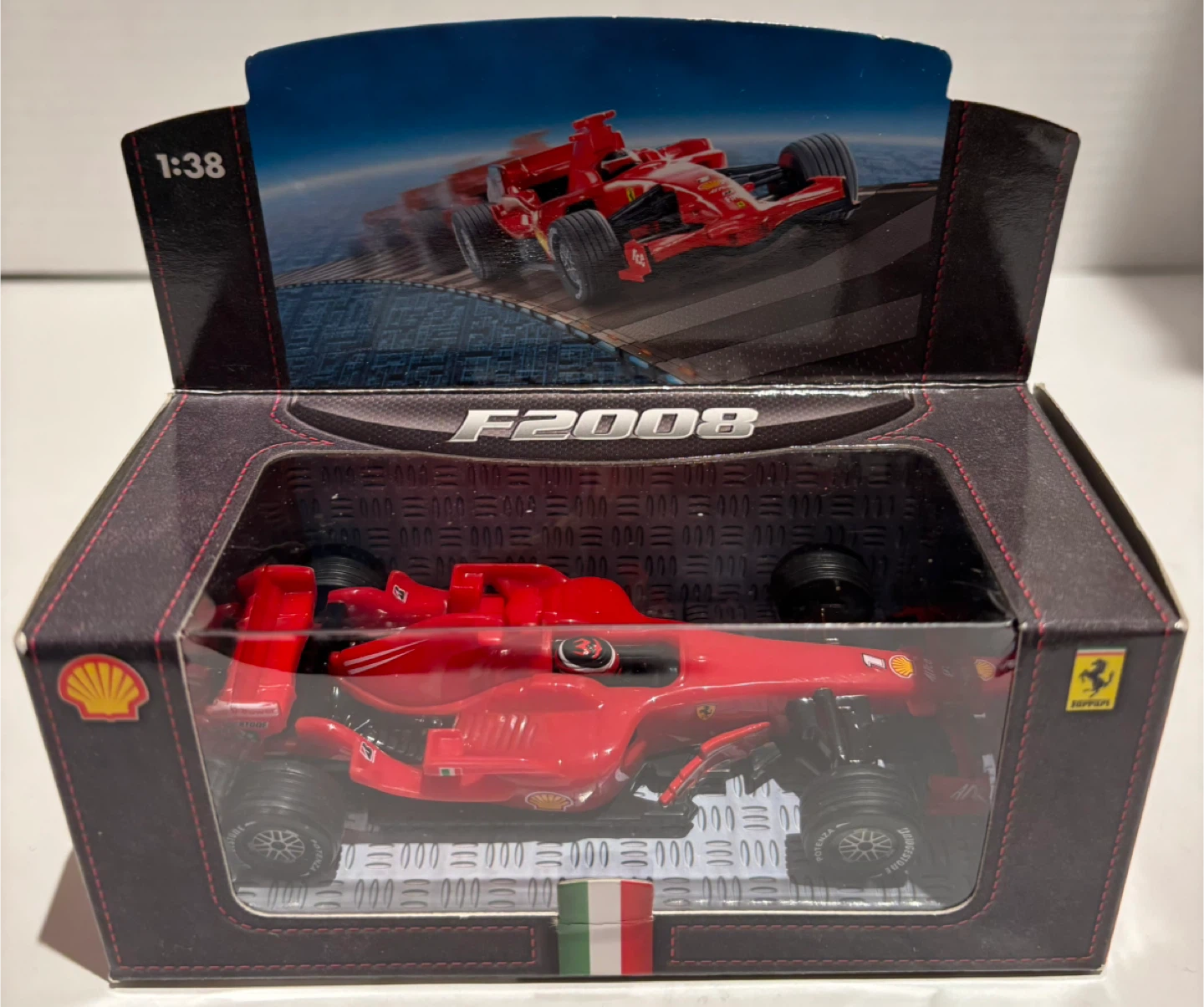 Selling a Shell V-Power Ferrari F2008 model car! It's in great condition and comes in the original box. This 1:38 scale model is a must-have for any Ferrari or F1 fan