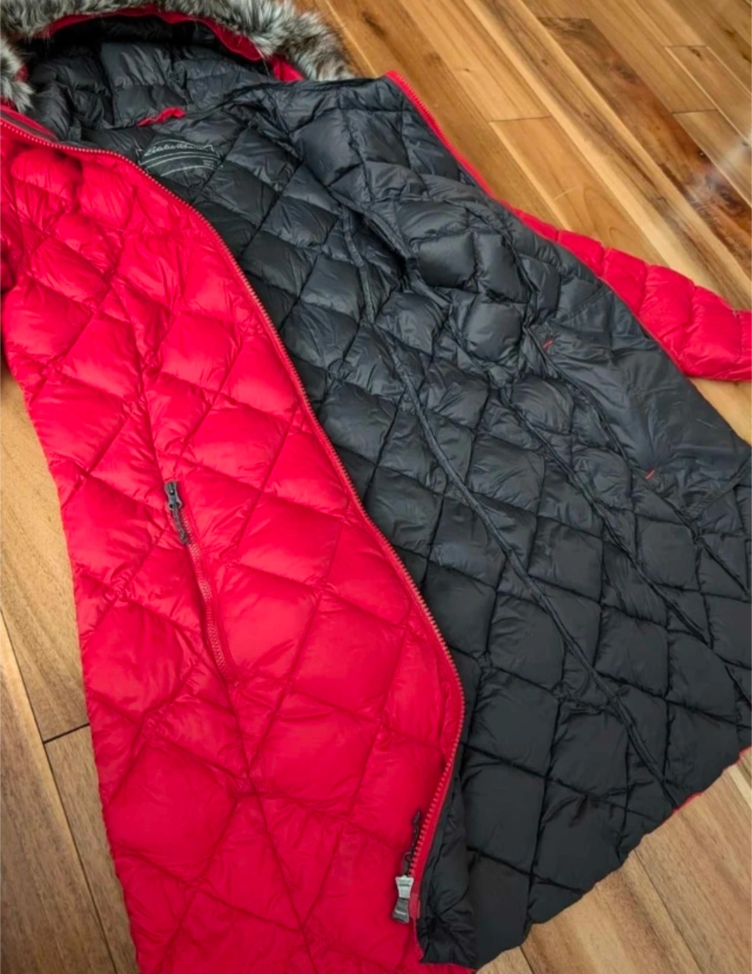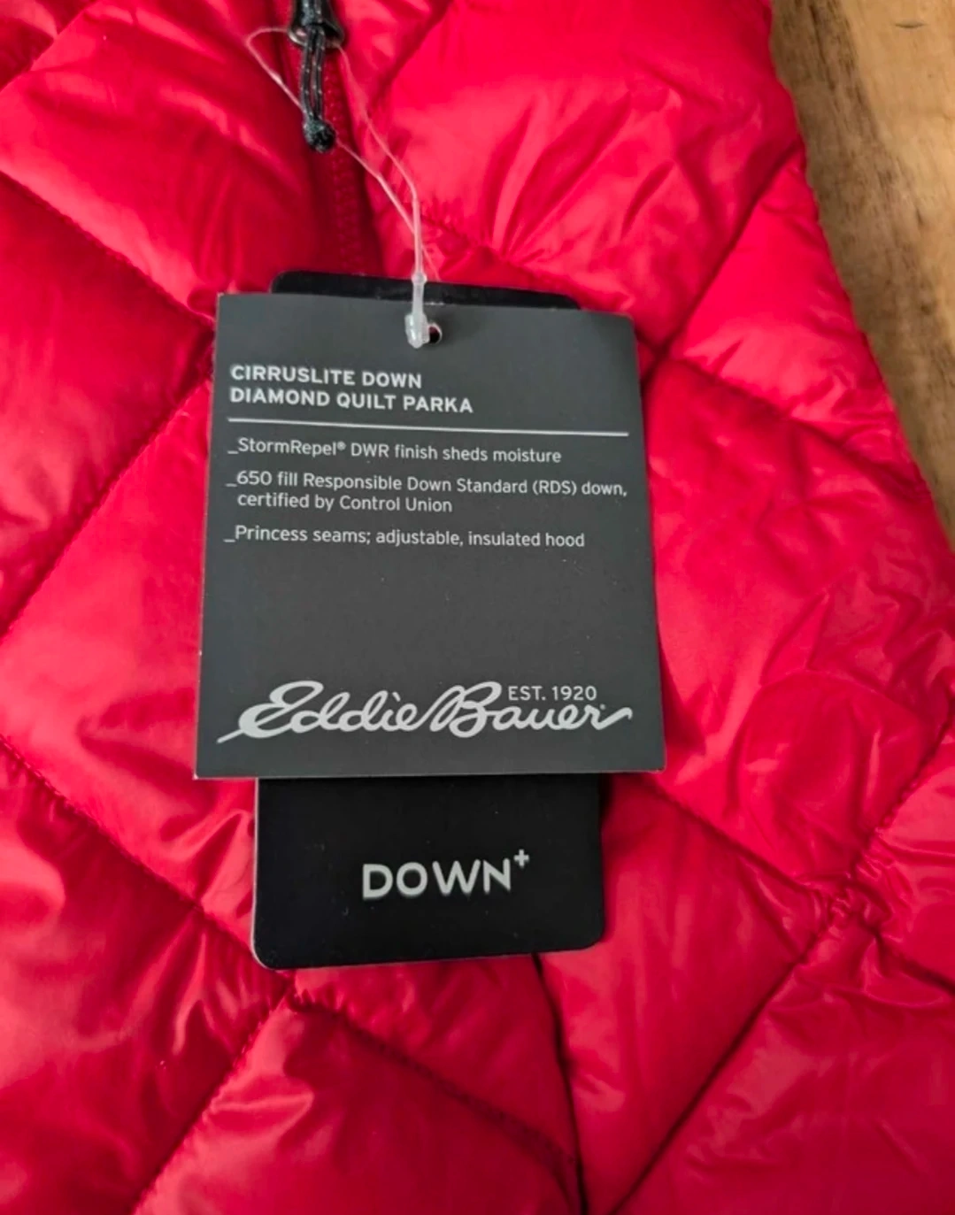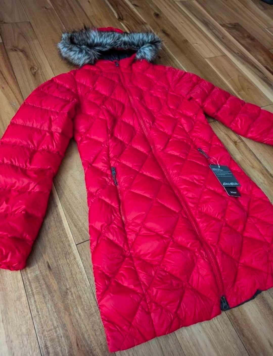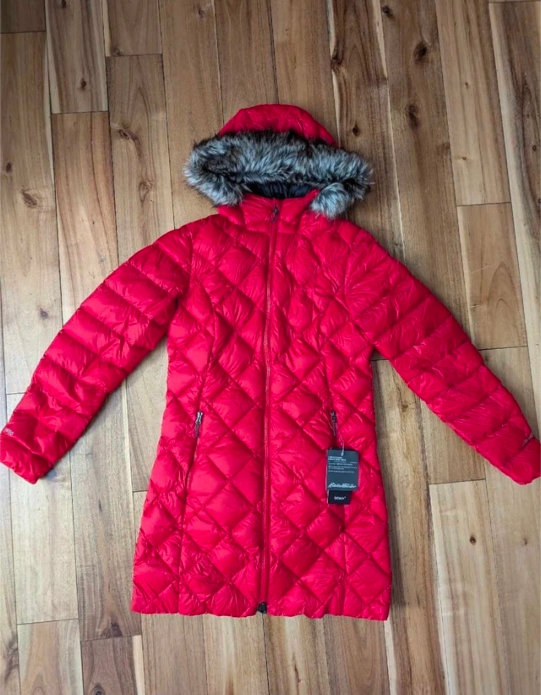 Brand new Eddie Bauer red women's jacket - retail price $260! It has never been worn and I no longer need it. Deeply discounted and price negotiable.! Contact for details!