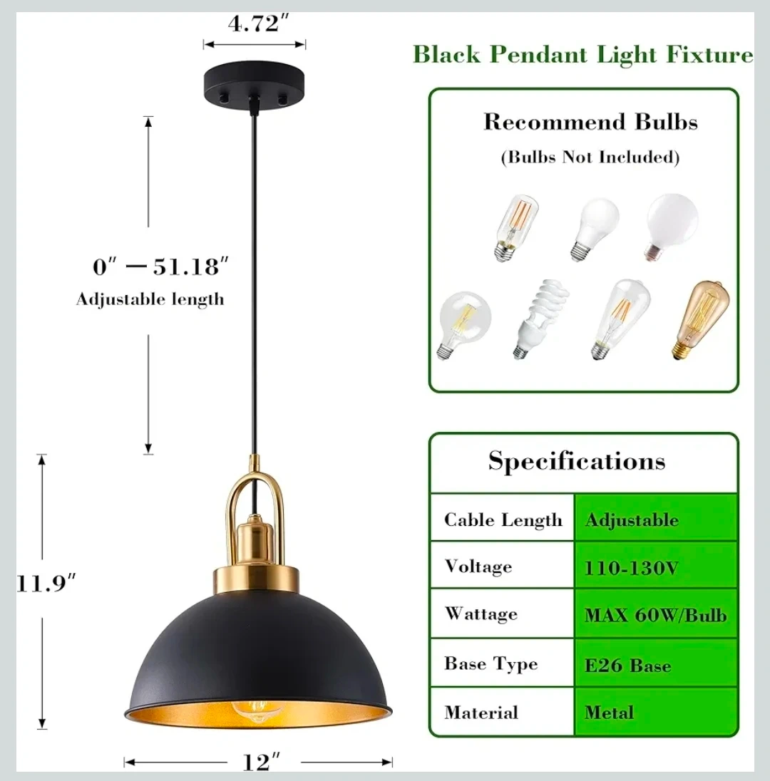 Add a touch of modern farmhouse style to your home with this pendant light fixture! Matte Black Adjustable Height, Vintage Hanging Ceiling Lights Fixture.