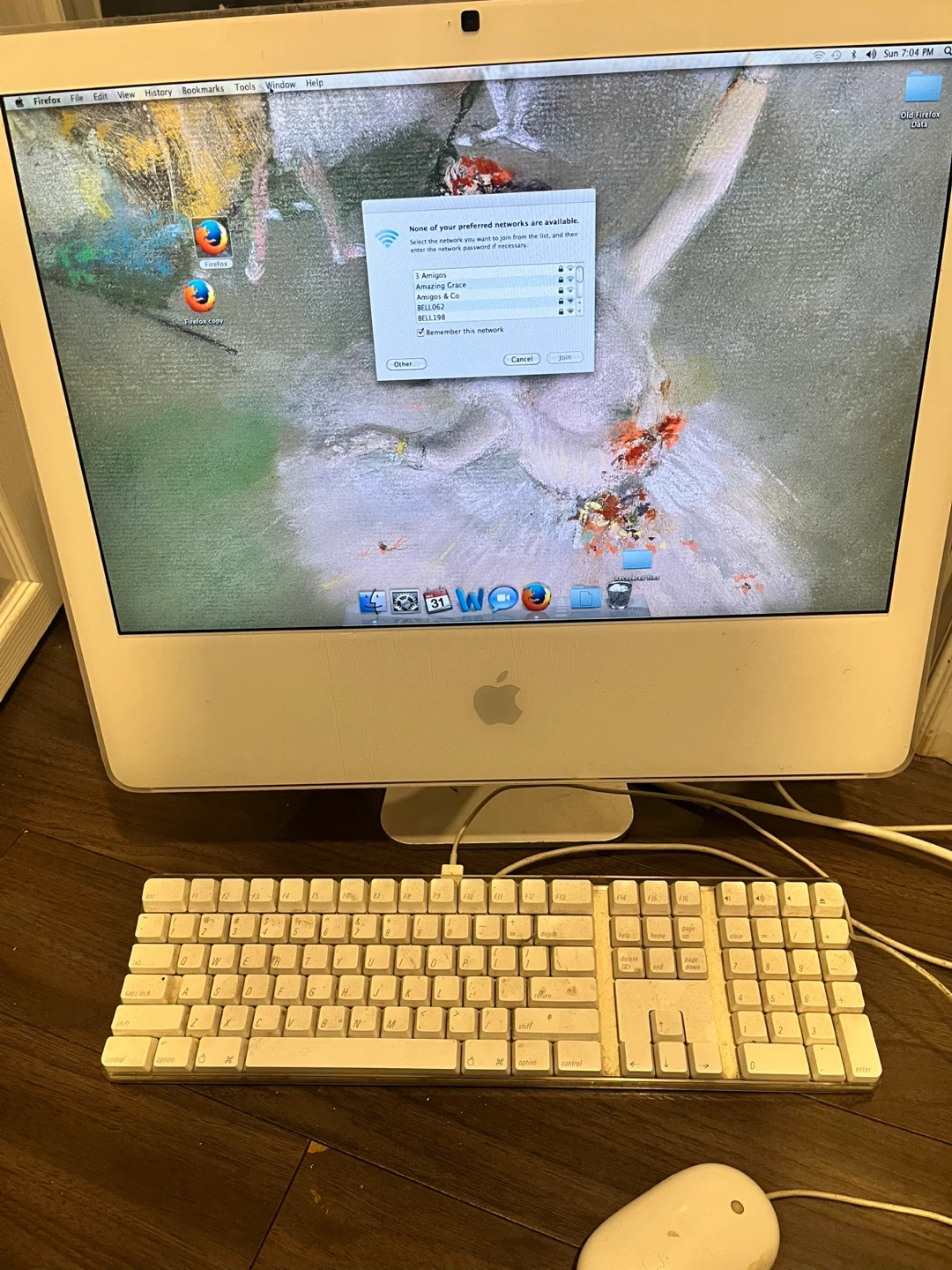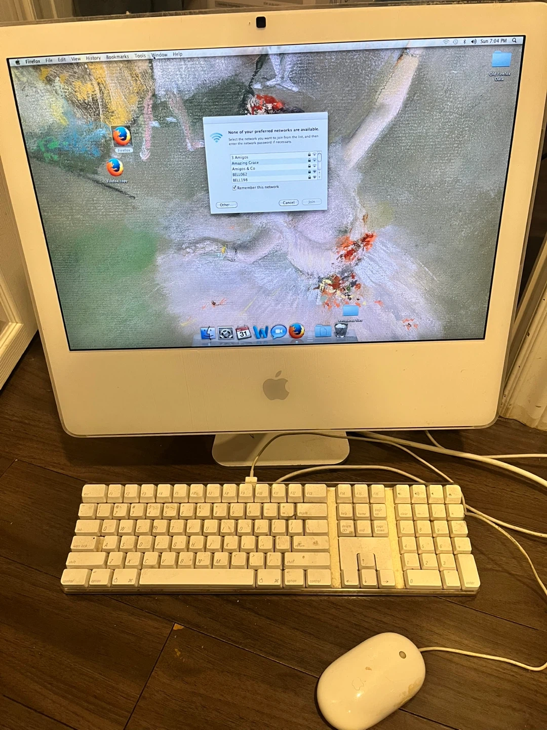 Selling a vintage Apple iMac G4 computer. It is in used condition as seen in the photos. Includes the keyboard and mouse.