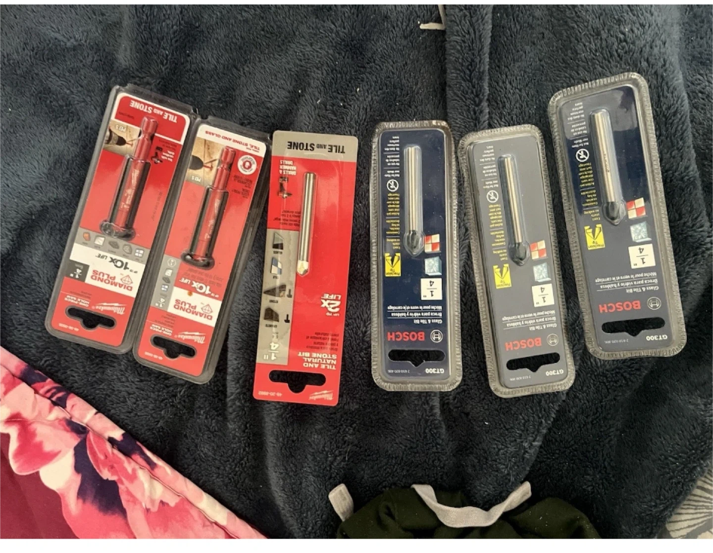 Selling a variety of tile and stone drill bits from Milwaukee and Bosch. Great for any DIY or professional projects! They appear to be in good condition, ready for use