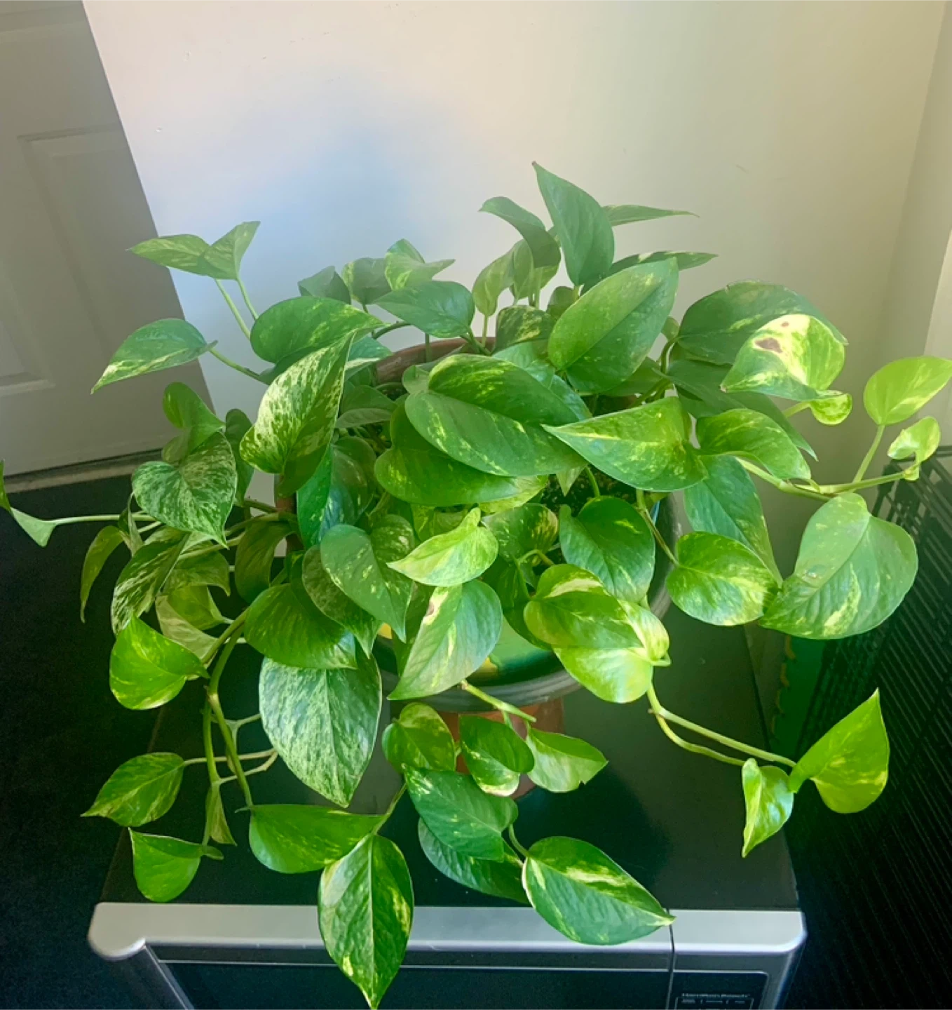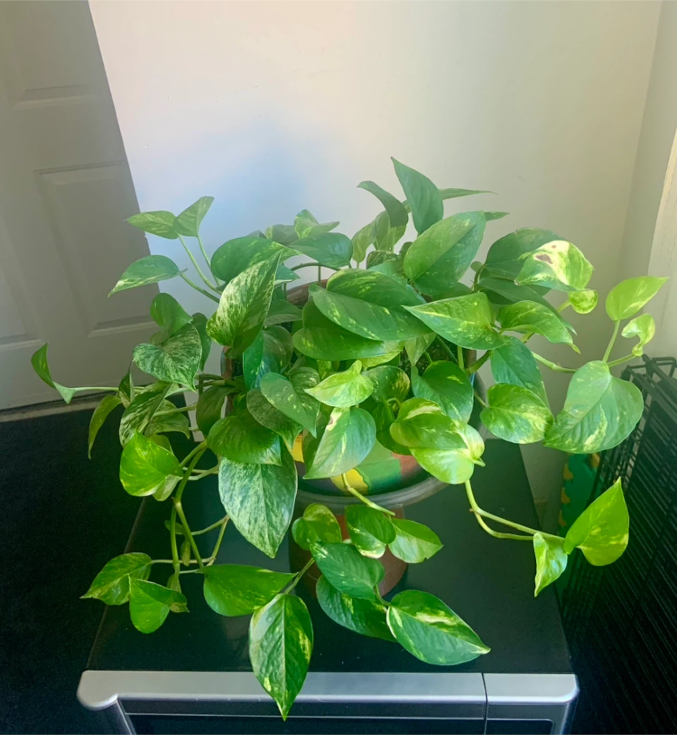 Selling a healthy pothos plant! It's in a colourful decorative pot. Would look great in any room.