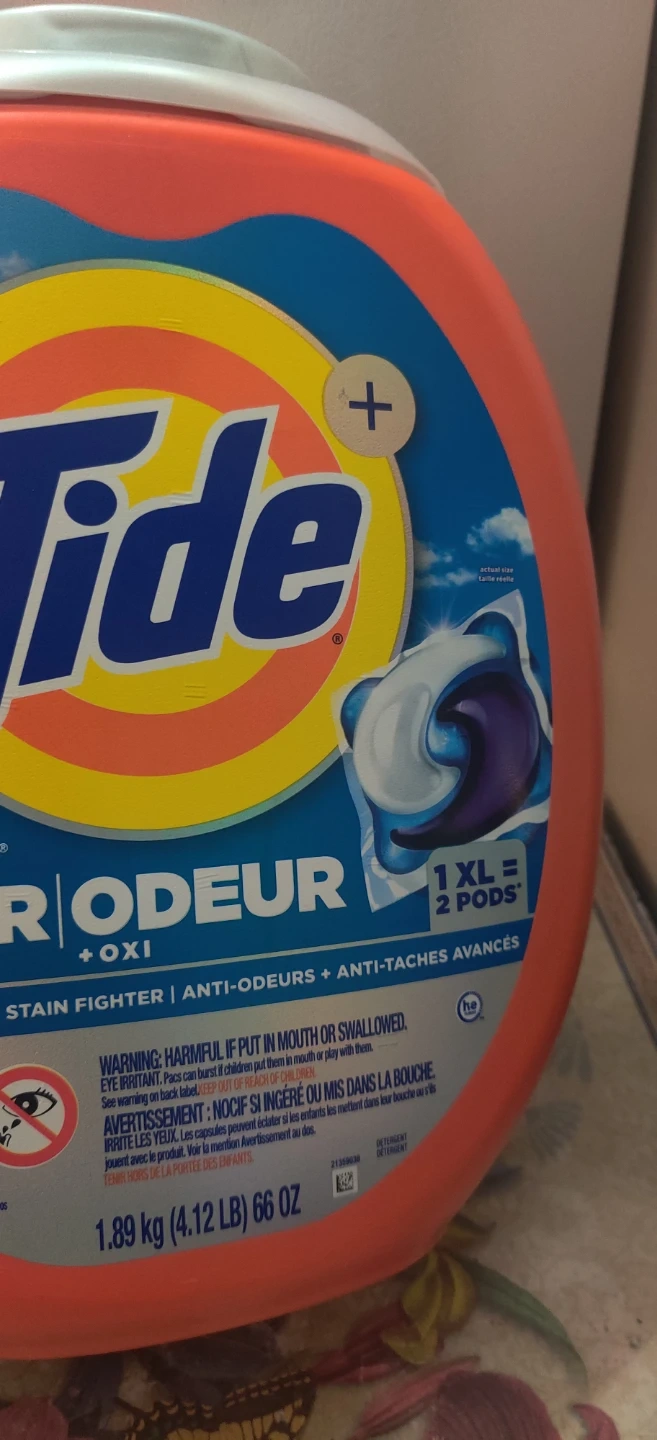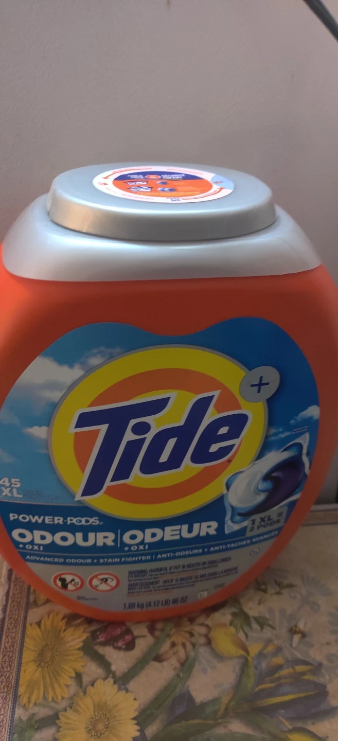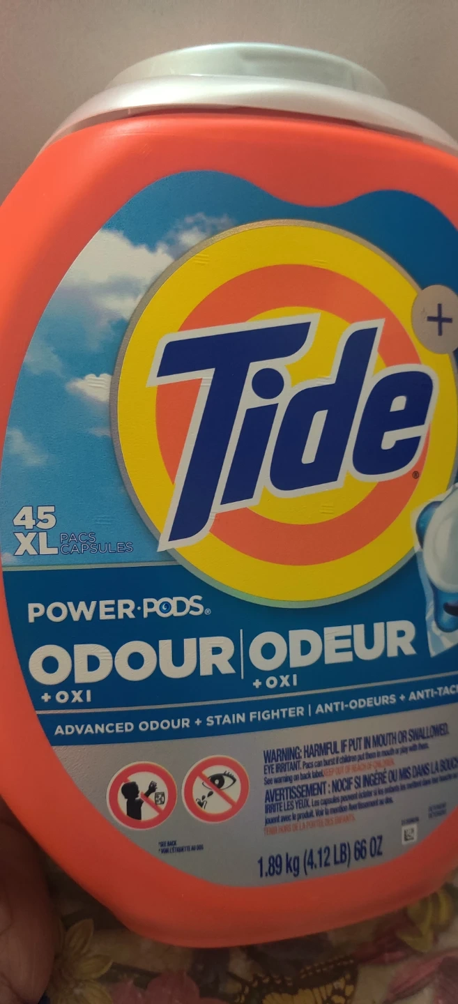 Selling a container of Tide Power Pods Odour + OXI, with 45 XL capsules. It's an advanced odour and stain fighter! Net weight is 1.89 kg (4.12 LB) 66 OZ. I might not give to the person who message me to purchase first .I will give to the person who I know will pick up within a reasonable time ....7 days