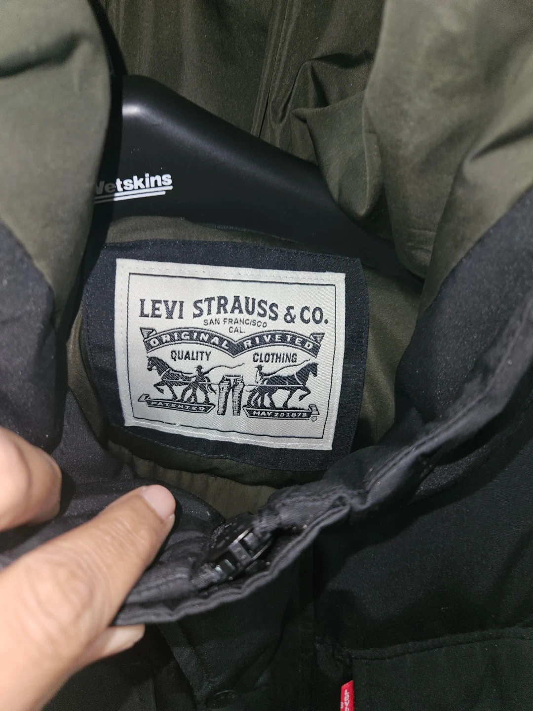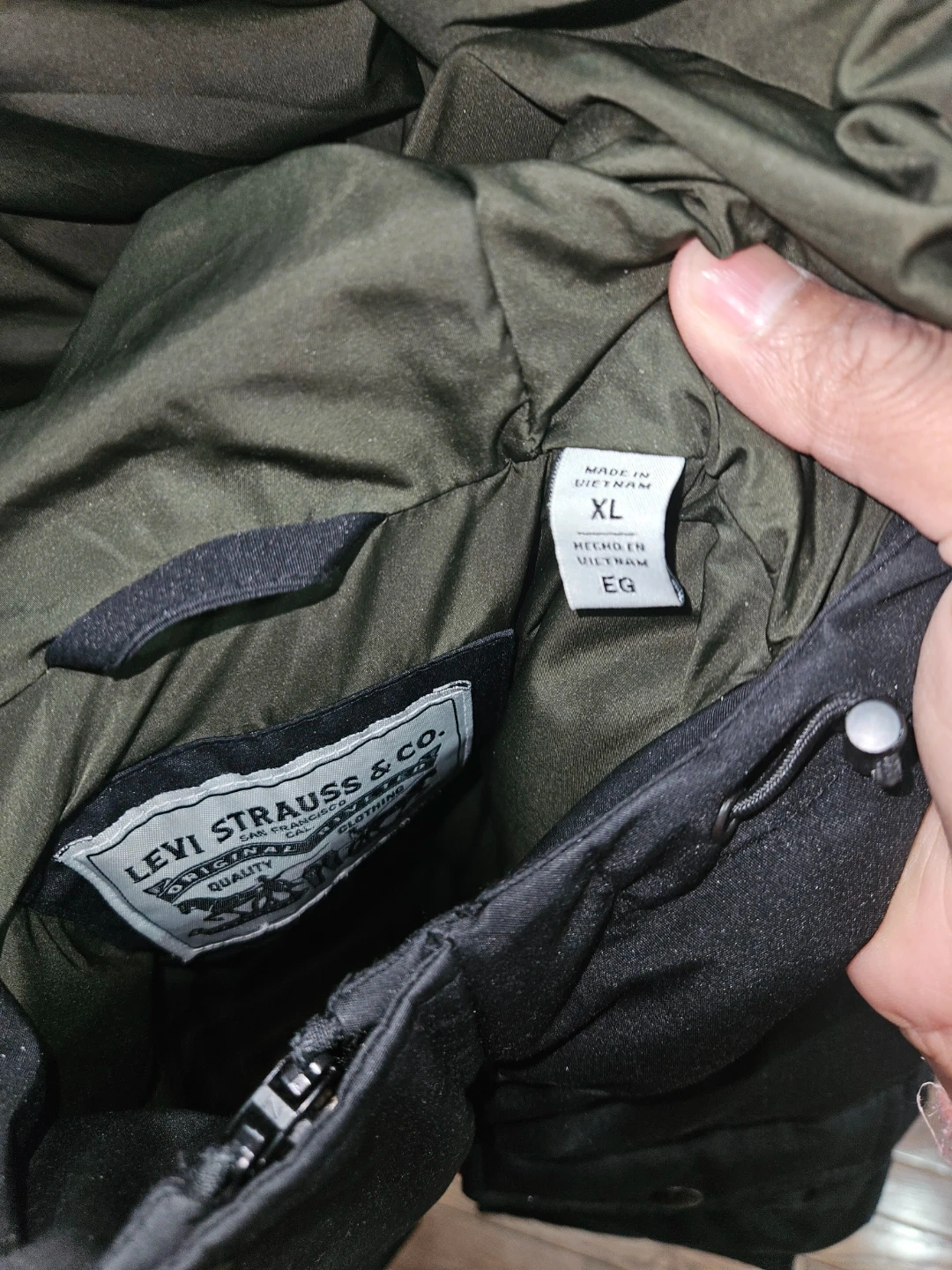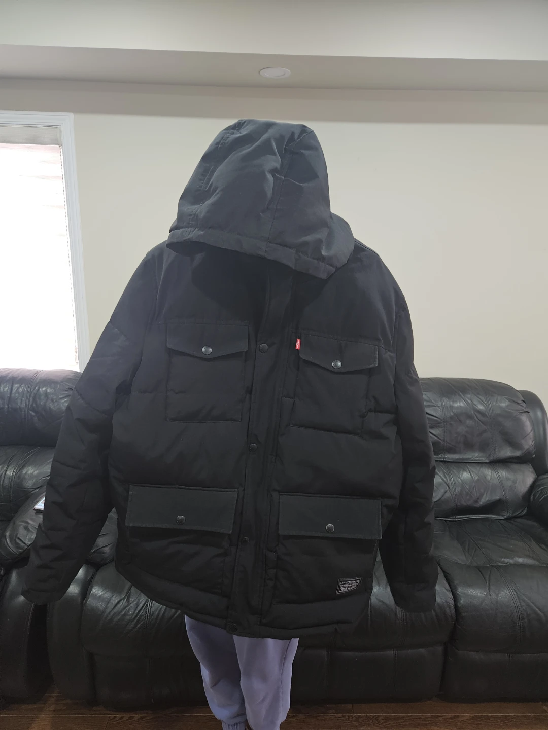 Levi Strauss & Co. puffer jacket in size XL! It's a stylish and warm jacket perfect for the Canadian weather. It's black and has a hood. Feel free to reach out if you're interested!