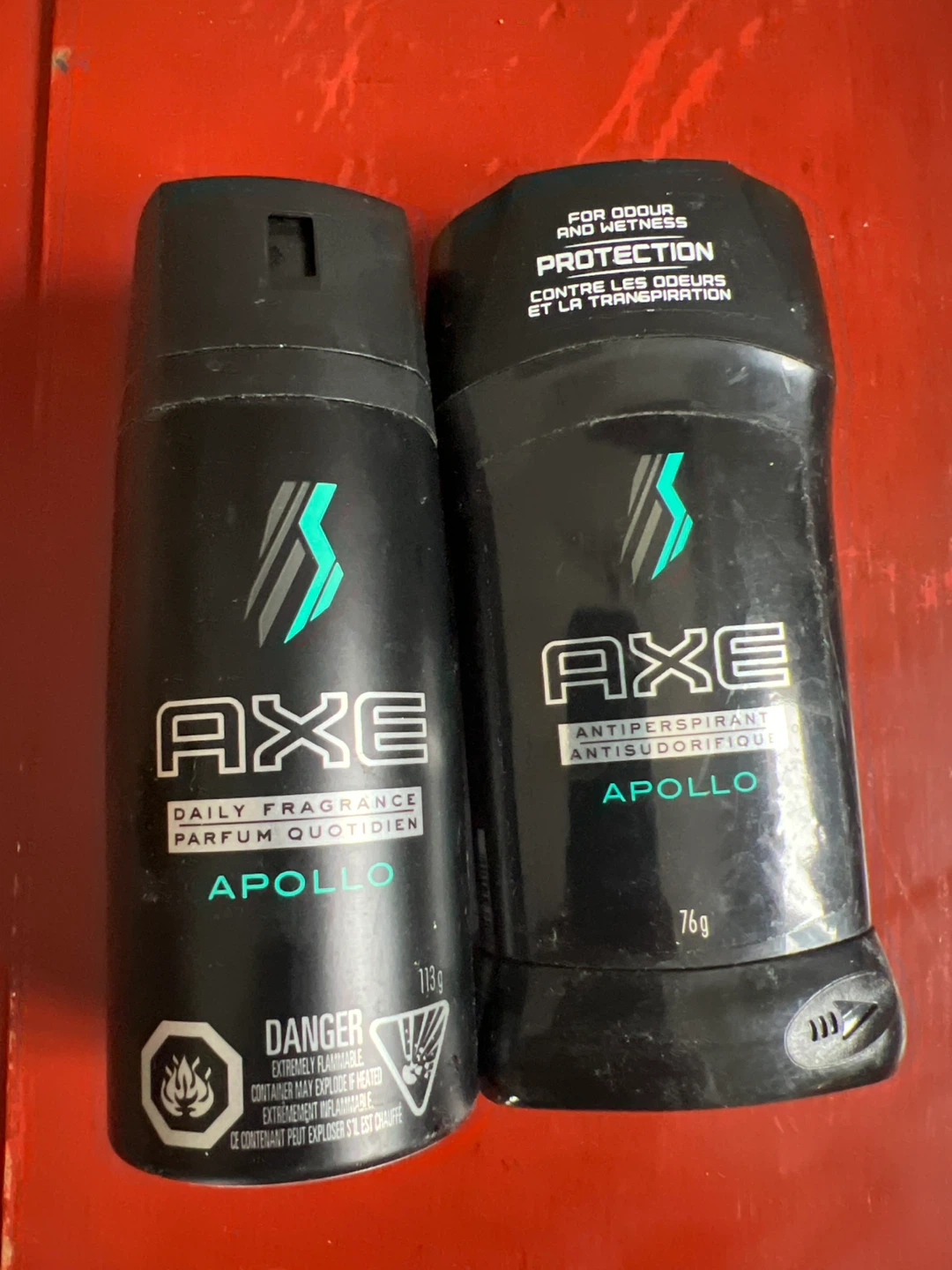 Free Axe Apollo products! You'll get both the daily fragrance and the antiperspirant. The daily fragrance is 113g and the antiperspirant is 76g new, never used