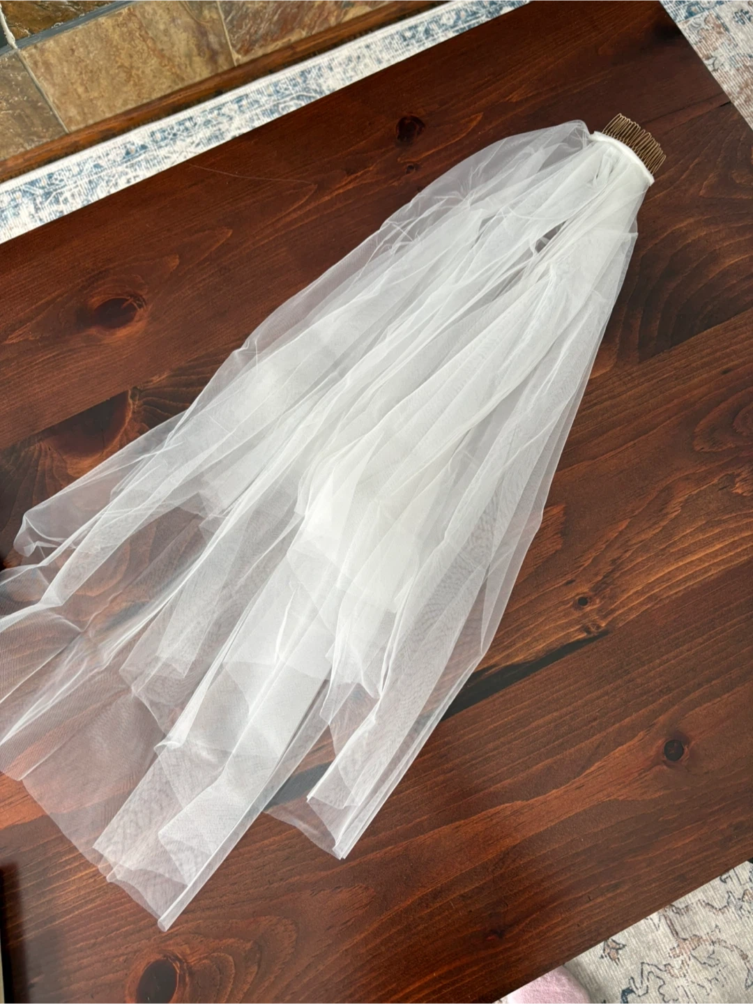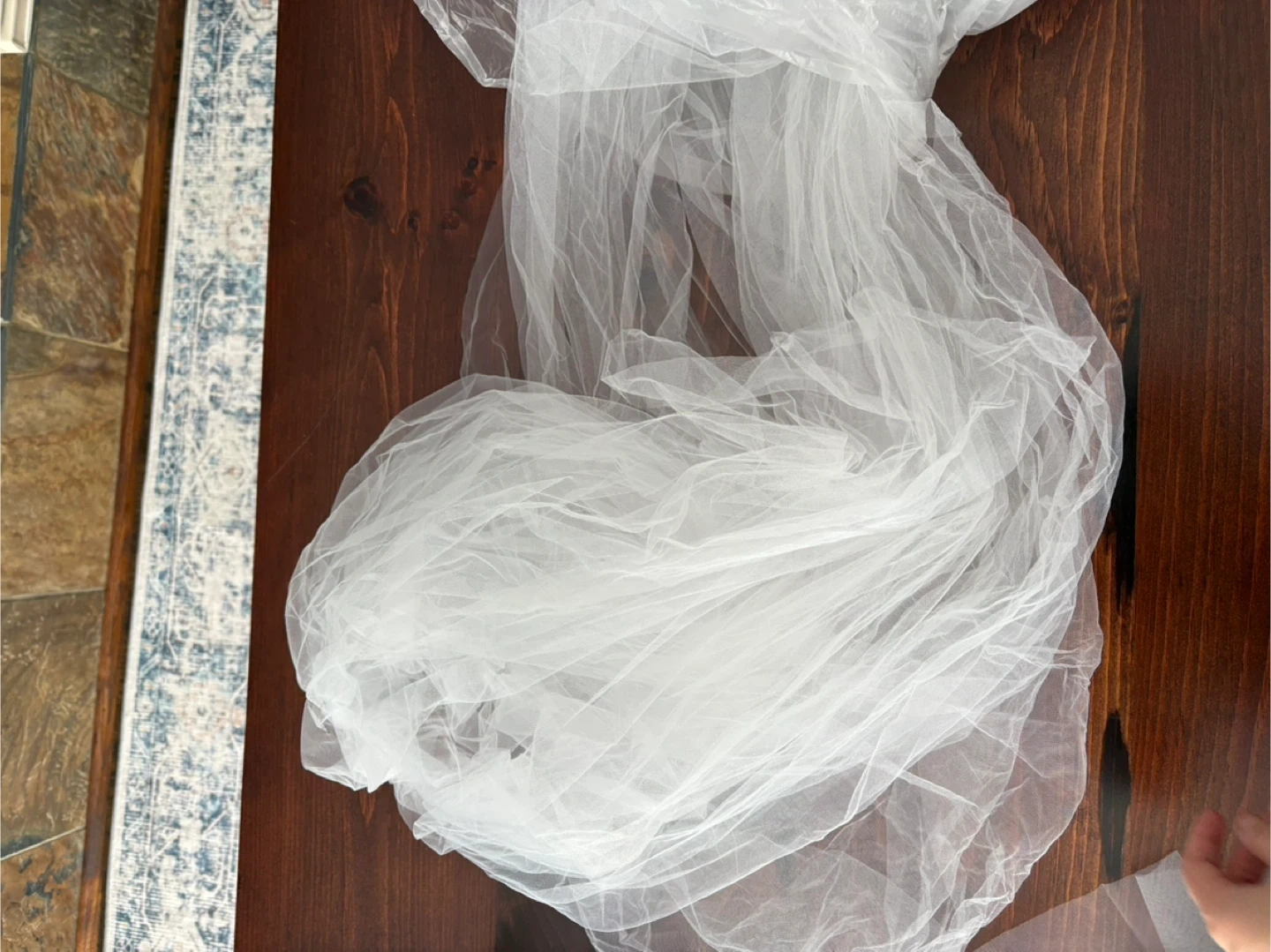 Two wedding viels, one short and new and one very long and used for photos. Needs a steam. Free.