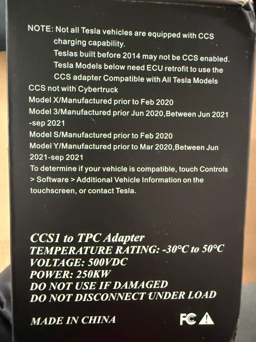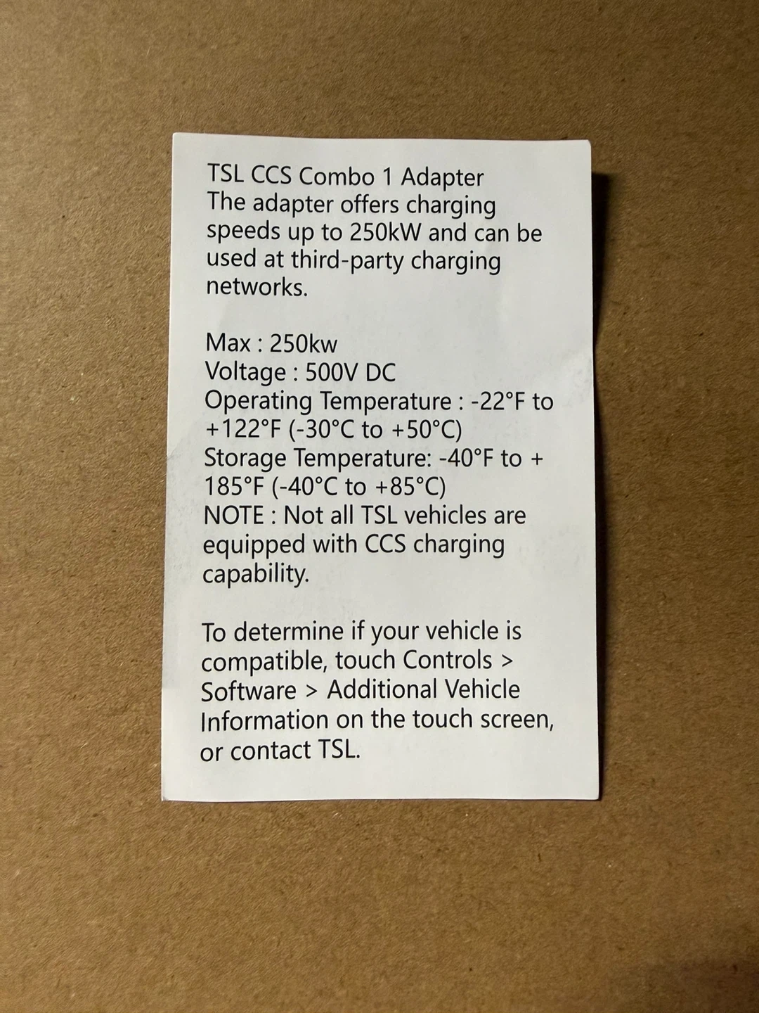 Selling a brand new TSL CCS Combo 1 Adapter, still in its original box! This adapter offers charging speeds up to 250kW and can be used at third-party charging networks. It's compatible with TSL and CCS chargers. The box is included!
