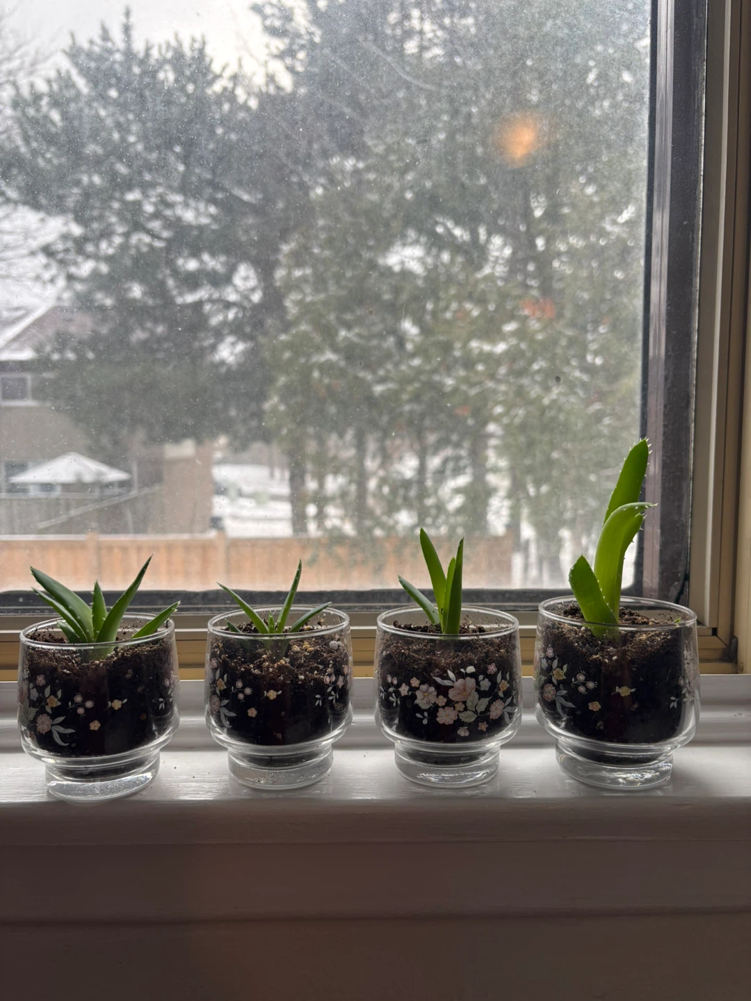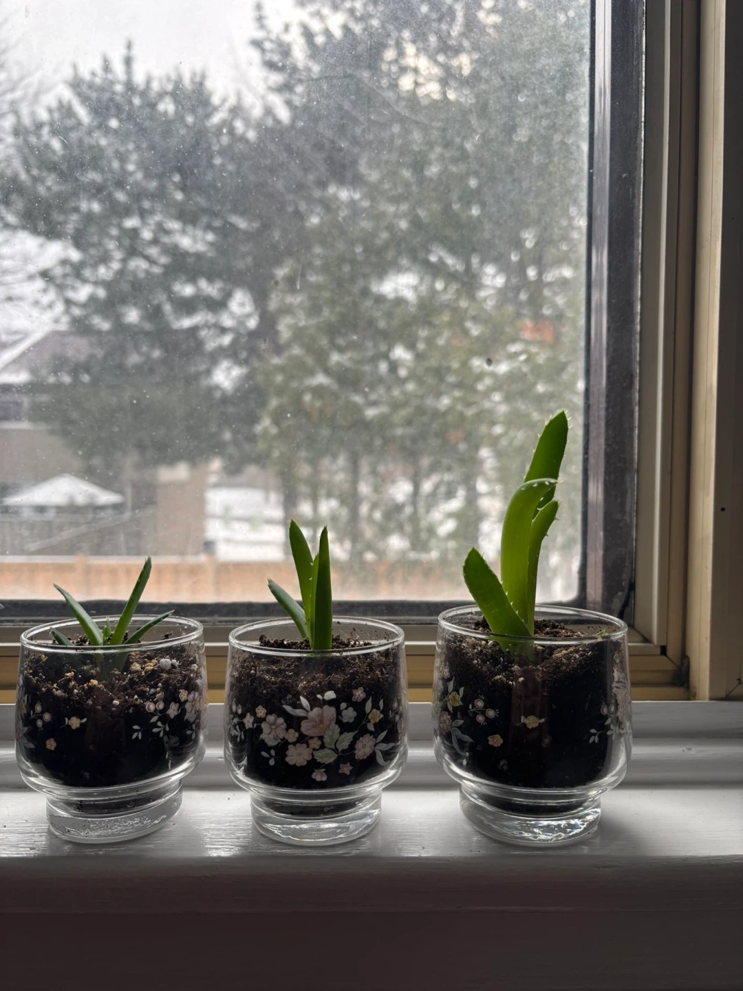I have a few small Haworthia / lace aloe plants for sale, each potted in a cute floral glass. They're perfect for adding a touch of green to your windowsill or desk! They're all healthy and ready to grow. Price per plant.