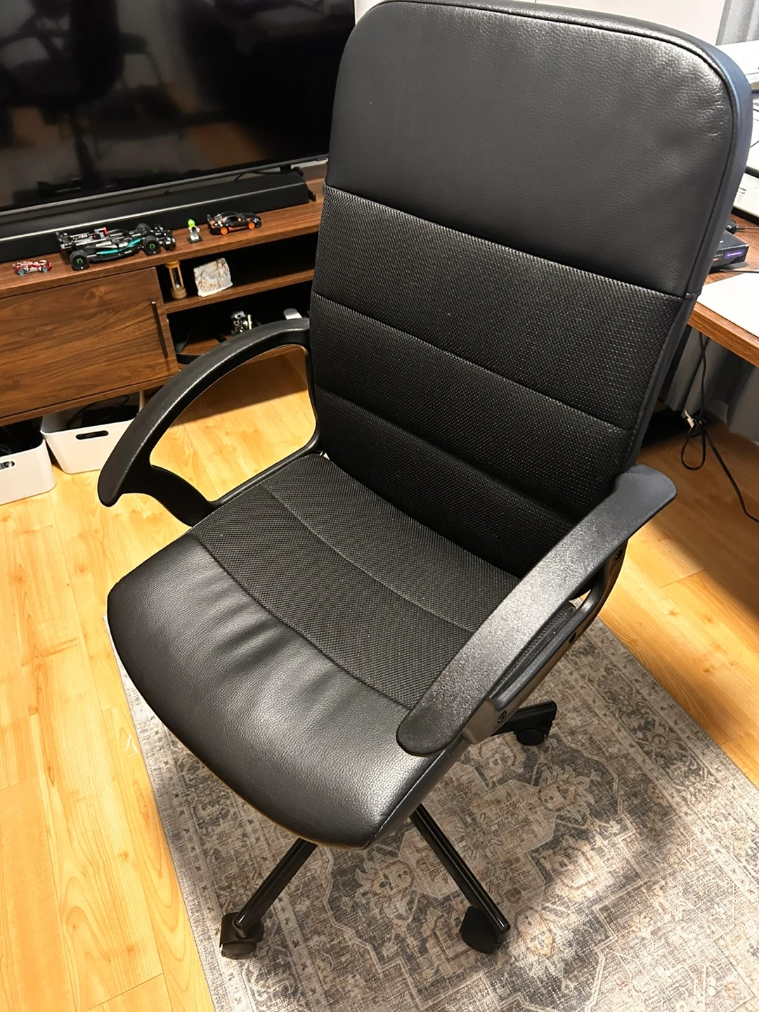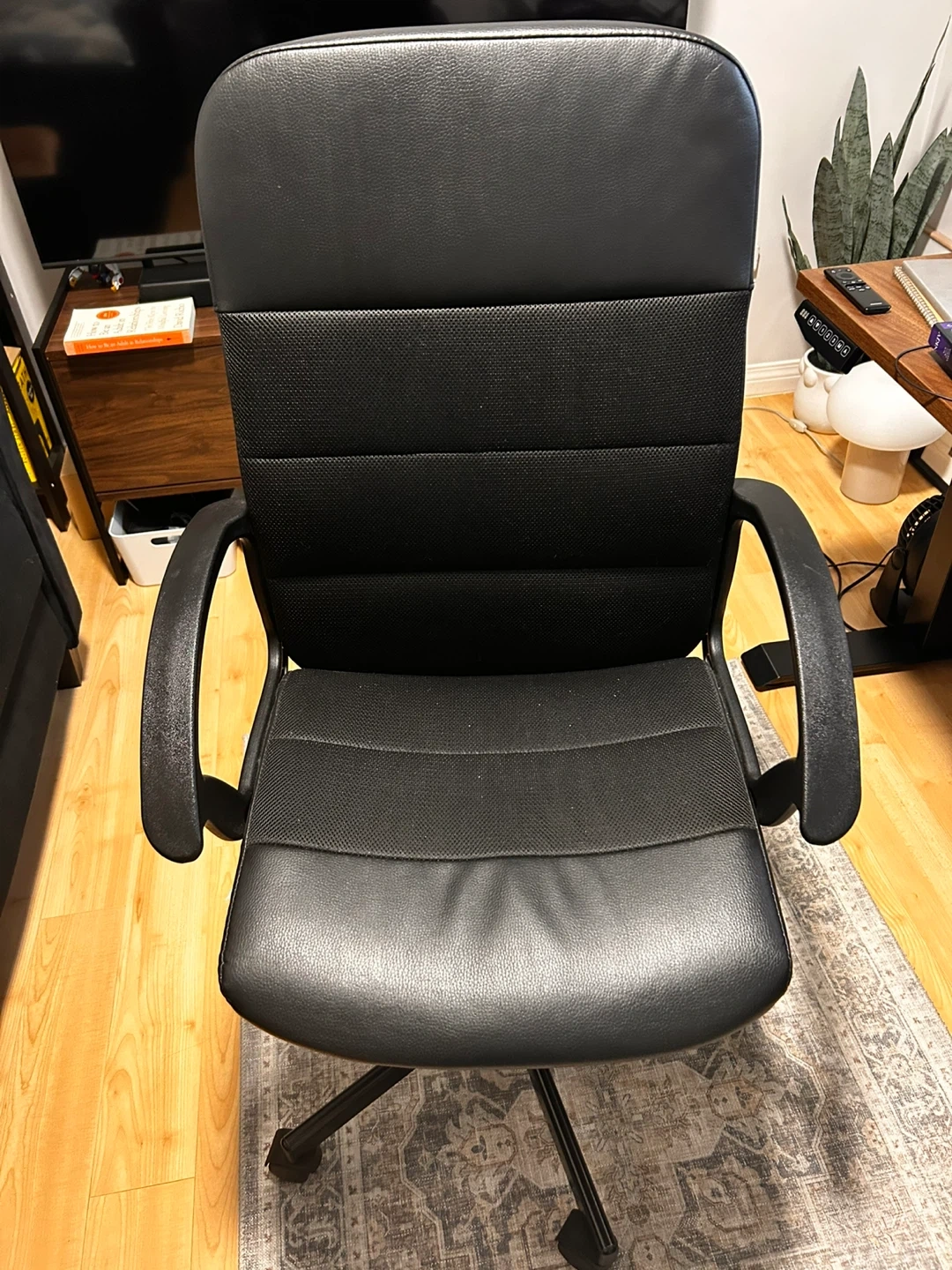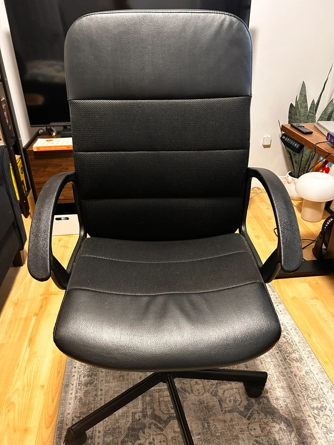 Looking to sell my IKEA Markus office chair in black! It's in great condition and super comfy for working from home or gaming. The chair has a high back and adjustable height, providing excellent support. It also features a tilt and swivel function for added flexibility. Perfect for any home office setup!