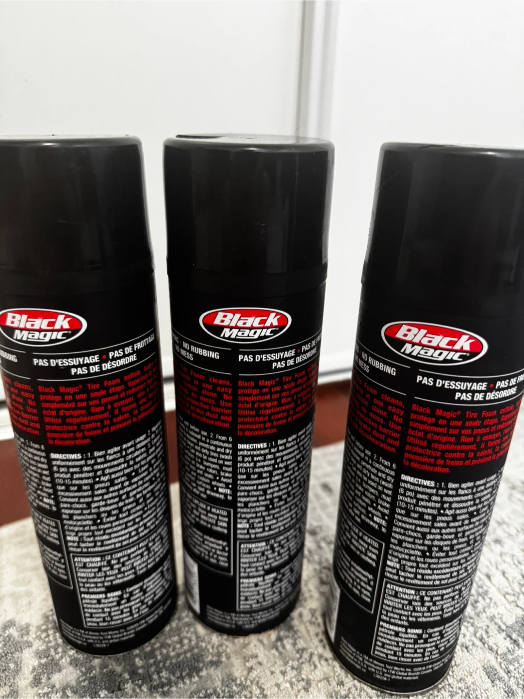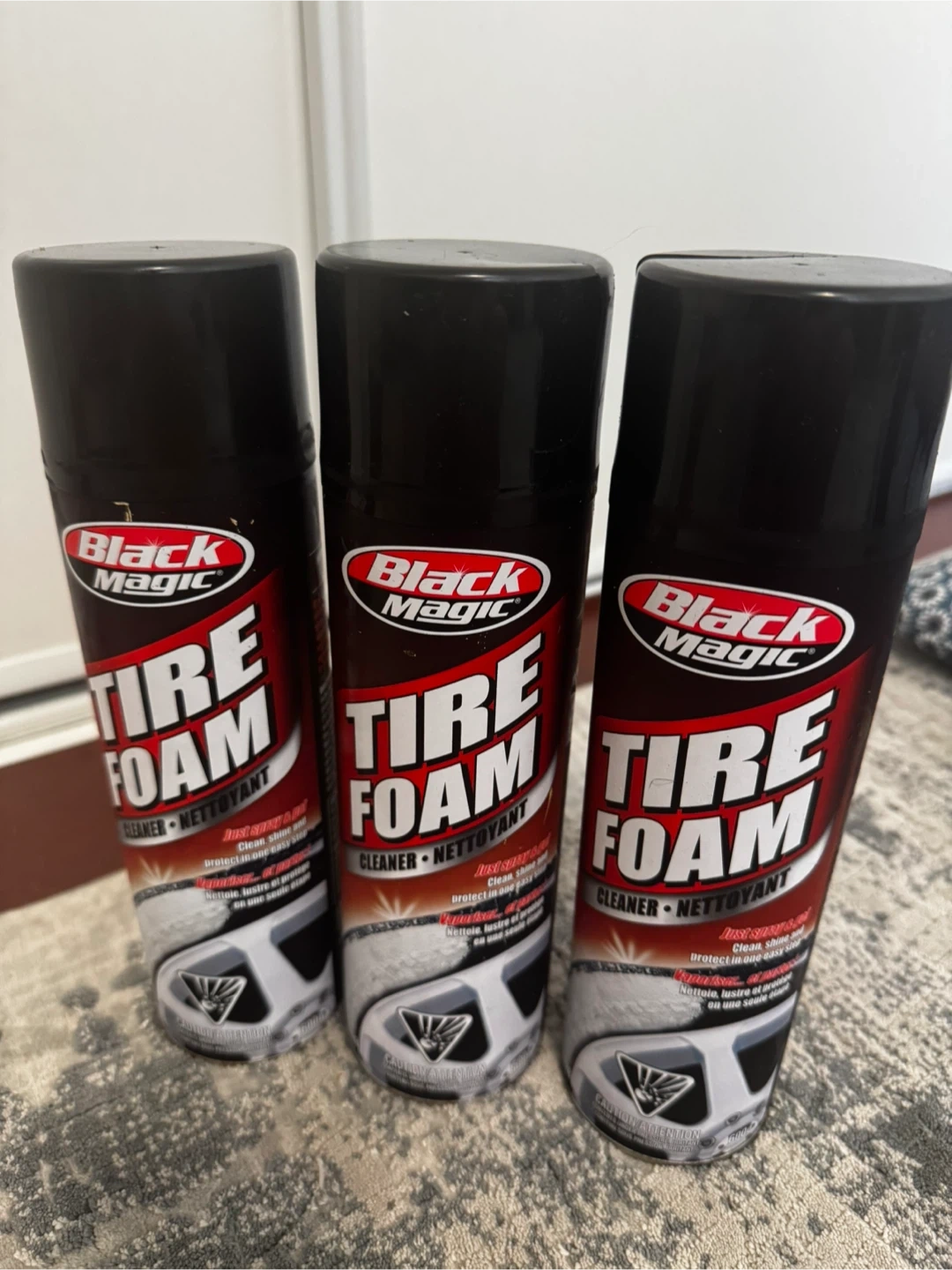 Selling three cans of Black Magic Tire Foam Cleaner. This tire foam cleans, shines, and protects in one easy step. No rubbing or mess!