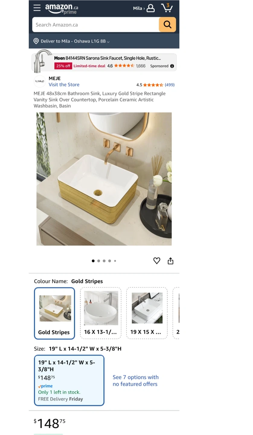 Brand new Gold Stripe Bathroom Sink