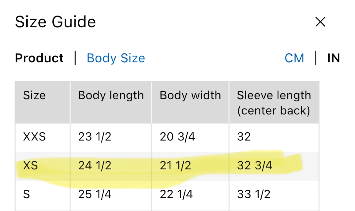 - SizeXs